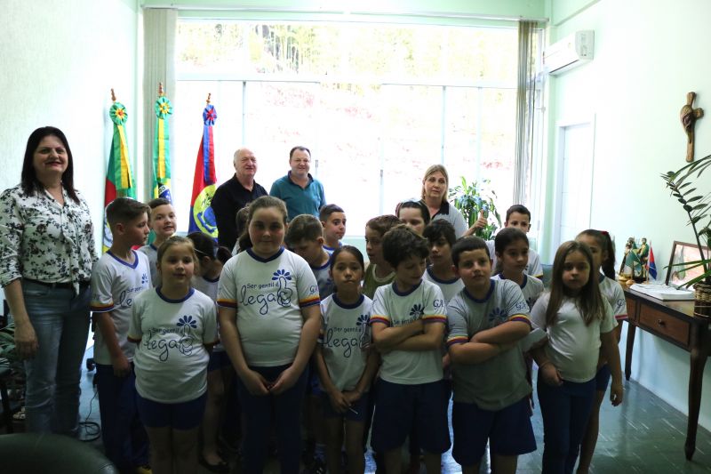 Na ocasião foram recebidos no Gabinete pelo prefeito Leomar José Foscarini, vice Loevir Benedetti e pela secretária de Educação, Cultura e Desportos, Izabel Cristina Barbizan Vastrinche. As crianças foram acompanhadas pelas professoras Méri e Rose.