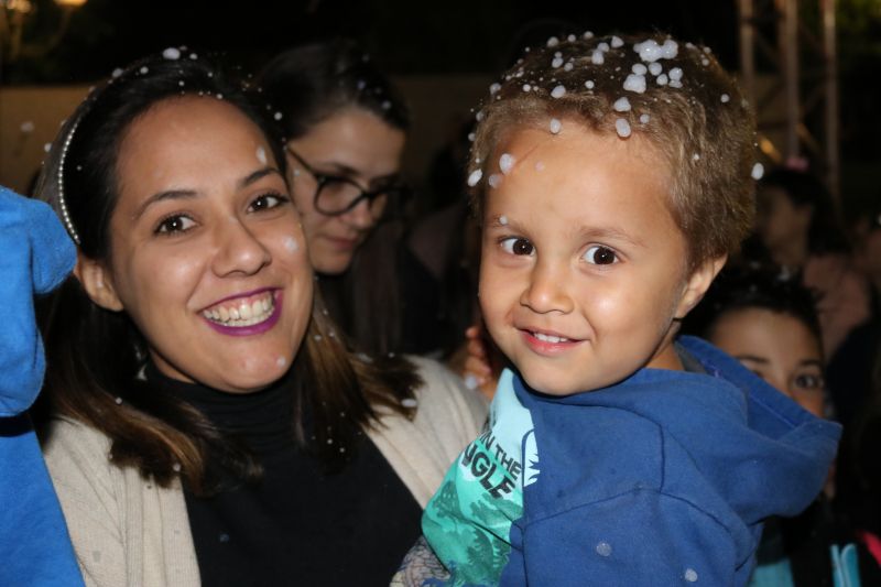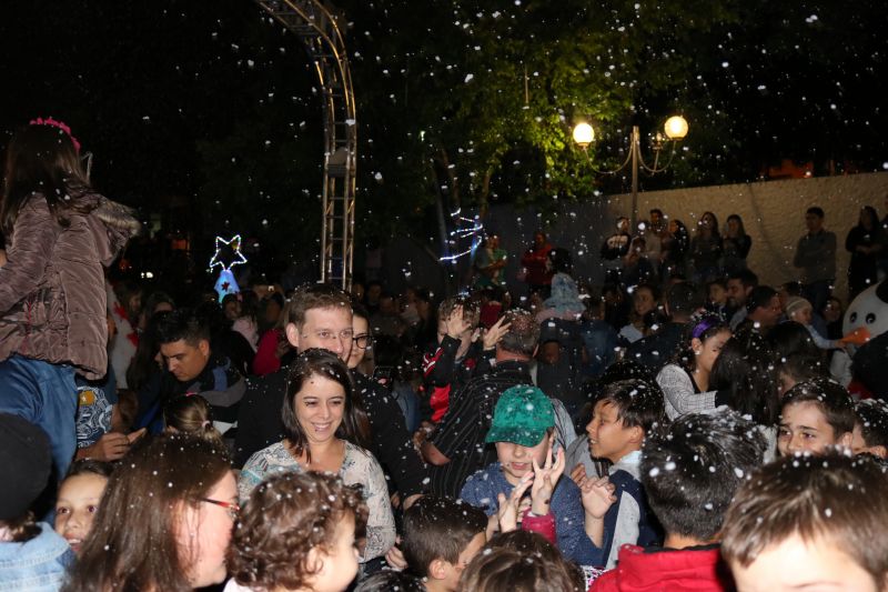 Durante a noite, uma das grandes novidades e que gerou expectativa nos últimos dias foi a Vila da Neve. Na sua primeira sessão, promoveu um verdadeiro espetáculo na Praça Central. Ao som da Banda da Escola de Arte, um show de neve trouxe o encanto dos contos de fadas, com cenografia recheada de elementos característicos do Natal em tamanhos grandes e que ganharam "vida" naquele espaço. Com a neve artificial o ambiente ficou ainda mais mágico, promovendo uma experiência encantadora para crianças e adultos que se divertiram intensamente. E foi apenas o começo. A programação do Natal Solidário prossegue até o dia 23 de dezembro, com muita música, Vila da Neve, os tradicionais Passeios de Dindinho, as Cantatas Natalinas para preencher os corações de esperança, também momentos de fé e gratidão.