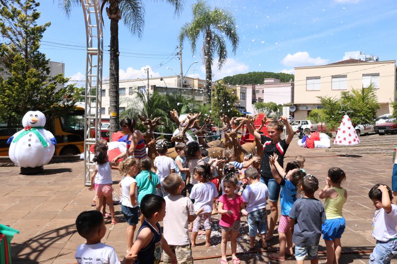 Apesar do calor ultrapassar os 30 graus, nevou em Sananduva. Nesta terça-feira (11) à tarde, em pleno calor que ultrapassou os 30º C, as crianças das Escolas Municipais de Educação Infantil Tia Salete, Tia Noêmia e Mundo Encantado se divertiram com a Vila da Neve, na Praça Central da cidade. Em uma sessão especial do Natal Solidário, as crianças se divertiram muito.
