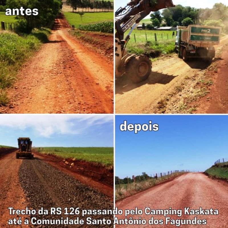 Um dos diferenciais do Programa Caminhos da Produção é a realização primeiramente da limpeza e reabertura das vias principais, com posterior cascalhamento ou britagem, o que faz com que a durabilidade dos serviços seja maior, aumentando o prazo para retorno e manutenção das mesmas. Esse trabalho já apresentou resultados positivos no trecho da RS 126 passando pelo Camping Kaskata até a Comunidade Santo Antônio dos Fagundes, recuperação feita nos meses de novembro e dezembro. Ainda nesse período aconteceu o mesmo trabalho na estrada que liga Sananduva (final da Rua Carlos Raymundi) até a divisa com Ibiaçá. A Comunidade Progresso também já recebeu as melhorias.