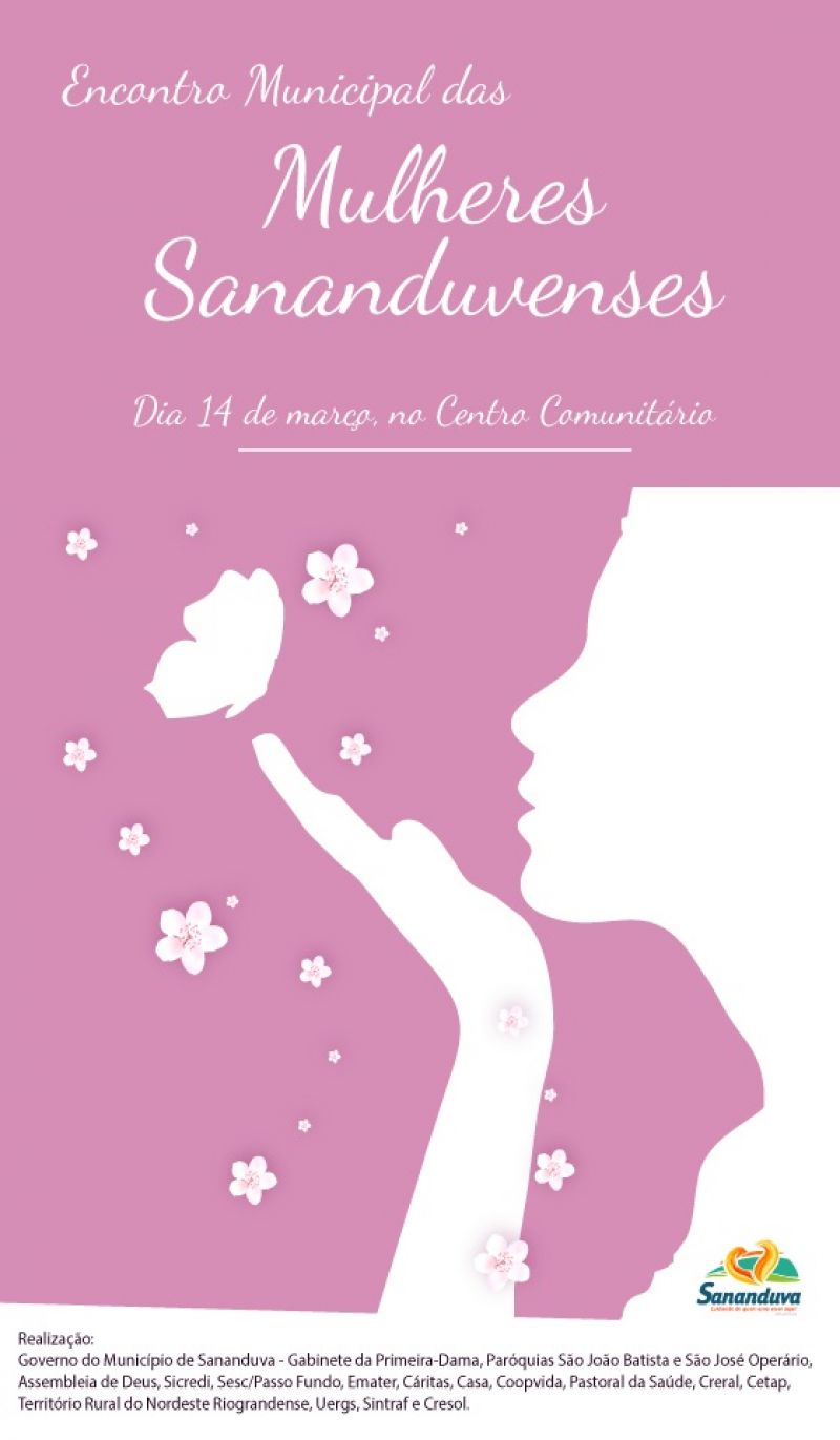 Para comemorar o Dia Internacional da Mulher, vem aí mais um Encontro Municipal das Mulheres Sananduvenses. O evento acontece no dia 14 de março (quinta-feira), no Centro Comunitário de Sananduva.