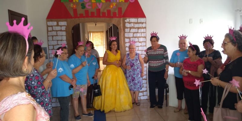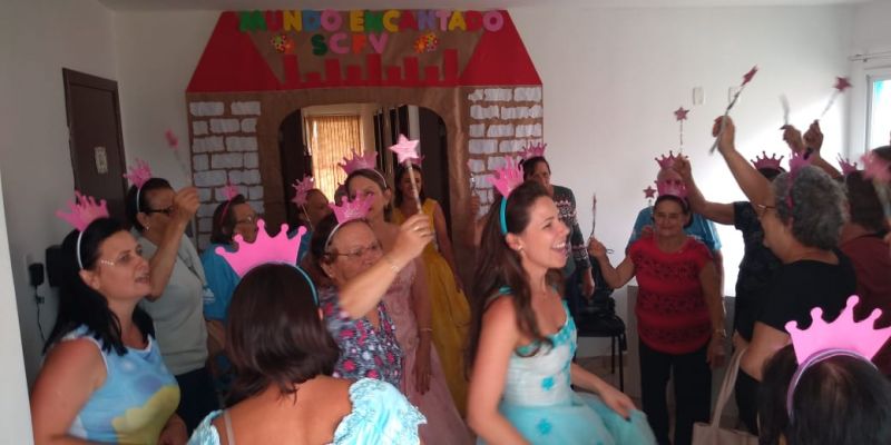 Dentre as tarefas foi realizada uma gincana onde puderam entrar num mundo mágico e relembrar as brincadeiras, as músicas e histórias que vivenciaram na infância. Foi trabalhado também dinâmicas, textos reflexivos, atividade física relacionado ao tema.