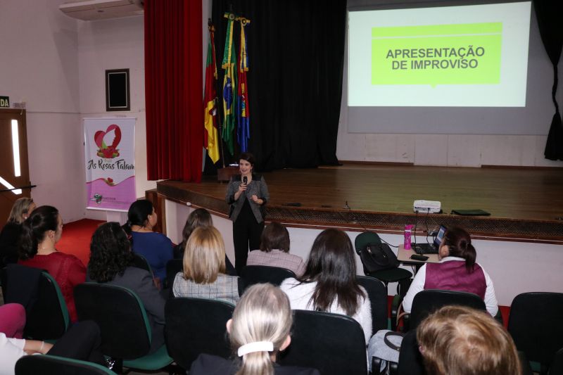 Paralela à reunião dos prefeitos, aconteceu na Casa de Cultura Prefeito Hilário Copatti o encontro mensal das primeiras-damas participantes do Projeto As Rosas Falam. Durante a tarde, a professora de comunicação e oratória Suzanara Agostinetto, parceira do Projeto, conduziu as orientações sobre apresentações de improviso, parte integrante do cronograma de trabalho desenvolvido. Além disso, as primeiras-damas debateram a pauta dos próximos encontros e atividades.