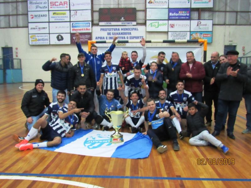 Juventus/Escala Materiais de Construção/Prevensan é bi-campeã da categoria principal da 3ª Copa Sananduva de Futsal 2019. Foram três meses de competição, 800 atletas envolvidos e muita emoção nas quatro finais que definiram os campeões da edição 2019. Confira os campeões e destaques de cada categoria: