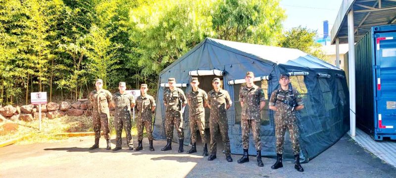 Sananduva foi contemplada com um posto de pré-triagem montado pelo Exército Brasileiro (1ºBCom). Na tarde desta segunda-feira (13), a estrutura foi instalada ao lado do Hospital Beneficente São João para triar pacientes e auxiliar na identificação de possíveis infectados com o novo coronavírus.