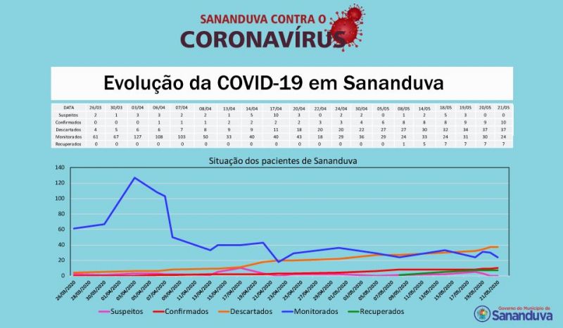 Com o apoio do Hospital Beneficente São João, o Governo do Município de Sananduva publica as informações estatísticas da semana referentes ao novo coronavírus - Covid-19. O objetivo é dar transparência às informações relacionadas à doença.