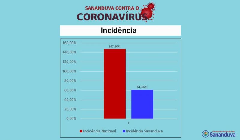 Comparação desse coeficiente com a média nacional: Incidência Nacional: 147,6% e Incidência Sananduva: 61,46%
