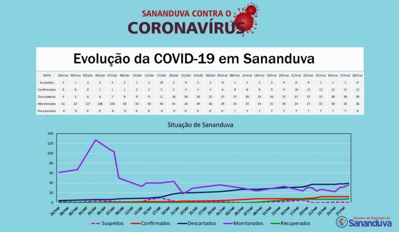 Com o apoio do Hospital Beneficente São João, o Governo do Município de Sananduva publica as informações estatísticas da semana referentes ao novo coronavírus - Covid-19. O objetivo é dar transparência às informações relacionadas à doença.
