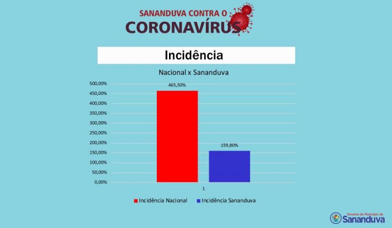 Comparação desse coeficiente com a média nacional: Incidência Nacional: 465,50% e Incidência Sananduva: 159,80%