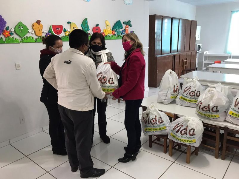 As famílias receberam os kits do Conselho da Alimentação Escolar nas Escolas de Educação Infantil Nona Amábile e Tia Noêmia, proporcionando a alimentação adequada que as crianças necessitam neste período de mudanças e dificuldades. Desde que as aulas foram suspensas, o Município foi autorizado pelo FNDE (Fundo Nacional de Desenvolvimento da Educação) a repassar aos estudantes da rede pública os gêneros alimentícios que seriam adquiridos para a merenda escolar. Os kits seguem as determinações do PNAE (Programa Nacional de Alimentação Escolar) quanto à qualidade nutricional, sanitária e respeita os hábitos alimentares e cultura local. São itens provenientes da agricultura familiar local, não-perecíveis e perecíveis.