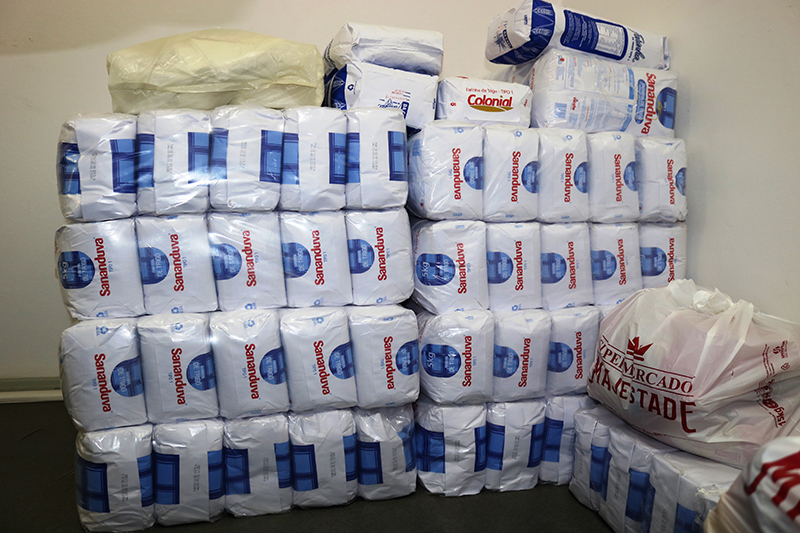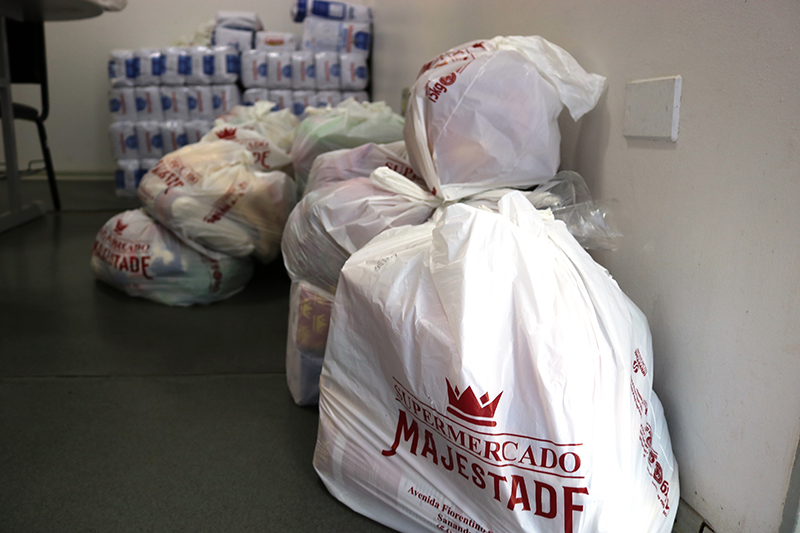 Os produtos arrecadados foram separados em cestas básicas para serem entregues a escolas municipais e ao Hospital Beneficente São João.