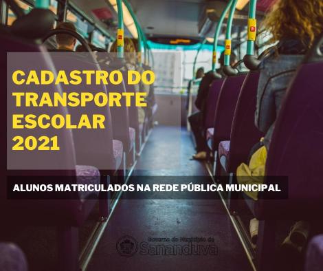A partir do dia 08 de fevereiro inicia o cadastro para o uso do transporte escolar para alunos matriculados na rede pública municipal. Inicialmente o cadastro vai ser realizado somente para os alunos matriculados nas escolas municipais. Para os alunos matriculados nas escolas estaduais vai ser organizado outro cronograma que será divulgado posteriormente.