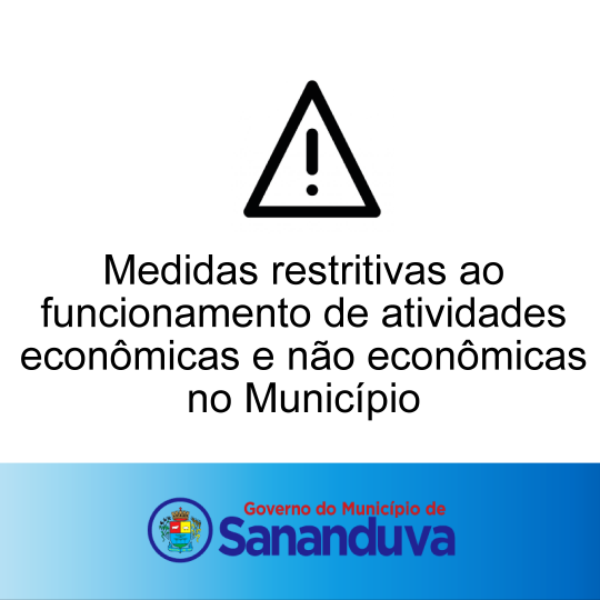 Nesta quarta-feira (02), o Governo do Município de Sananduva publicou o decreto que impõe medidas restritivas ao funcionamento de atividades econômicas e não econômicas com o objetivo de controlar o avanço dos indicadores relativos à pandemia de covid-19. A medida adotada faz parte das recomendações do Comitê Técnico Regional da Região COVID Passo Fundo.