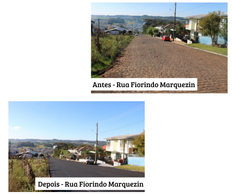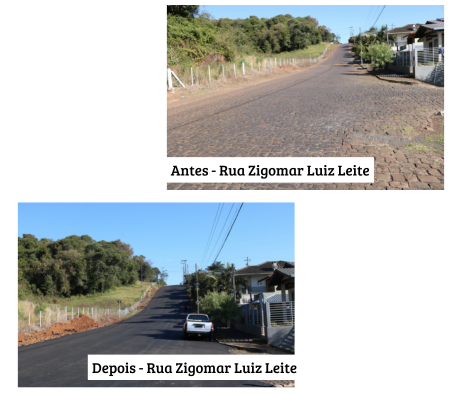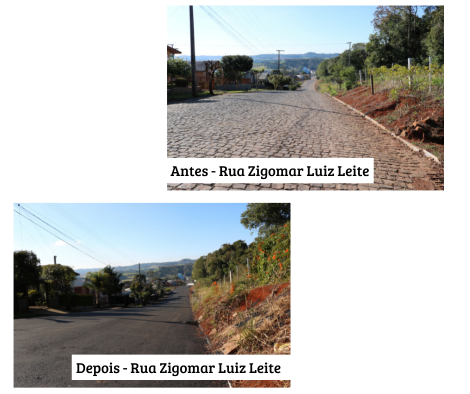 Para o prefeito Vermelho Pansera, as obras de melhorias trazem benefícios à população. “Além de melhorar a trafegabilidade, as vias pavimentadas dão acesso a empresas do município e, também, fazem ligação com as comunidades de Linha Progresso e Nossa Senhora do Carmo. Nossa meta é atingir 100% de ruas pavimentadas nos próximos anos”, finaliza.