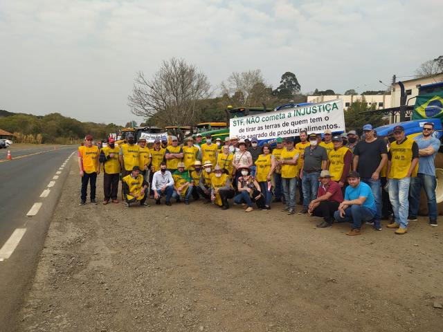 Na manhã de segunda-feira (23), o prefeito Vermelho Pansera, o assessor Leonardo Ritti e a presidente da Câmara de Vereadores Eliani Mezadri, estiveram no trevo de acesso a Getúlio Vargas onde ocorreu uma manifestação pacífica contra a derrubada do Marco Temporal no Supremo Tribunal Federal (STF). Na mobilização, agricultores e entidades reiteraram o apoio à aprovação do Projeto de Lei 490/2007, que tramita no Congresso Nacional.