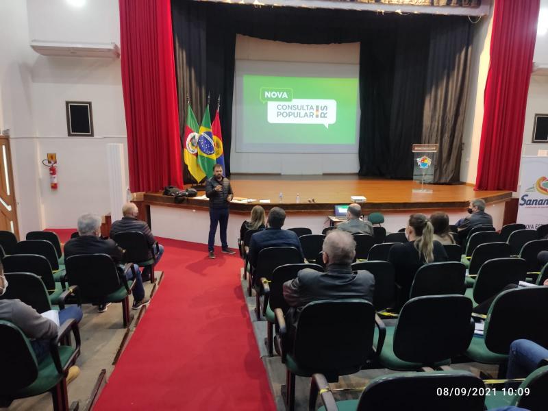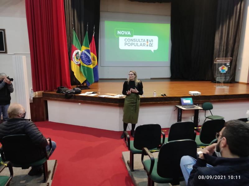 O prefeito Vermelho Pansera participou, na manhã de quarta-feira (08), da reunião do Conselho Regional de Desenvolvimento – Nordeste. O COREDE Nordeste, em que fazem parte 19 municípios da região, se reuniu na Casa da Cultura Prefeito Hilário Copatti para o lançamento da Consulta Popular. A diretora Bruna Blos, do Departamento de Articulação Regional e Participação, vinculado à Secretaria de Planejamento, Governança e Gestão do Estado do RS explanou aos presentes como vai ocorrer a Consulta Popular de 2021.