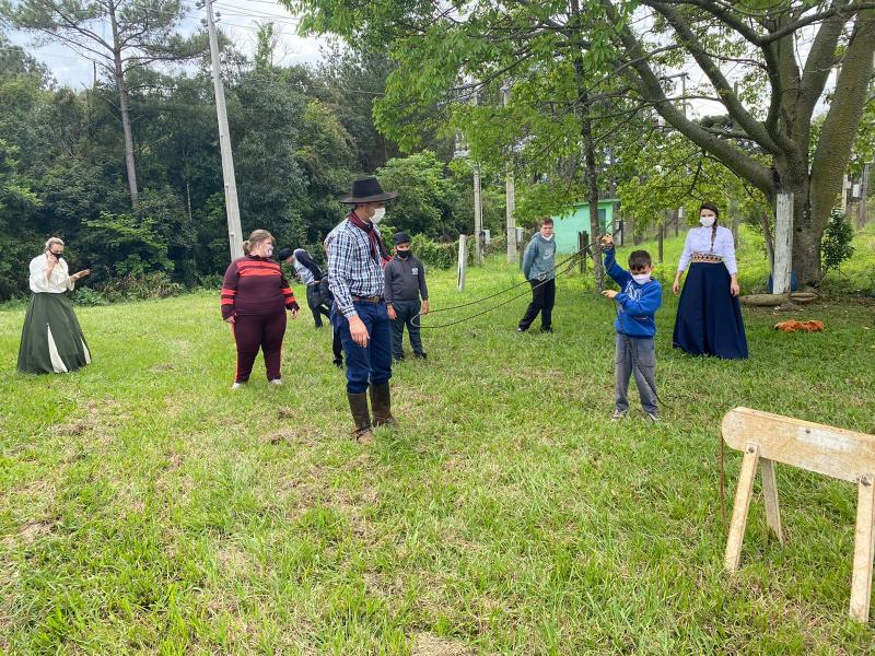 Neste mês de setembro, aconteceram ações do projeto Cultivando as Tradições Gaúchas com as crianças e adolescentes. Decoração do ambiente sobre o tema, mateada (onde cada participante pode fazer o seu próprio chimarrão), danças, músicas, trajes e alimentação típica, e, lógico, muitas brincadeiras marcaram as atividades da Semana Farroupilha. Servidores do CRAS, a primeira dama Luci Pansera e, também, Alan Pansera colaboraram com o projeto, desenvolvendo recreação de laço a vaca parada com as crianças.