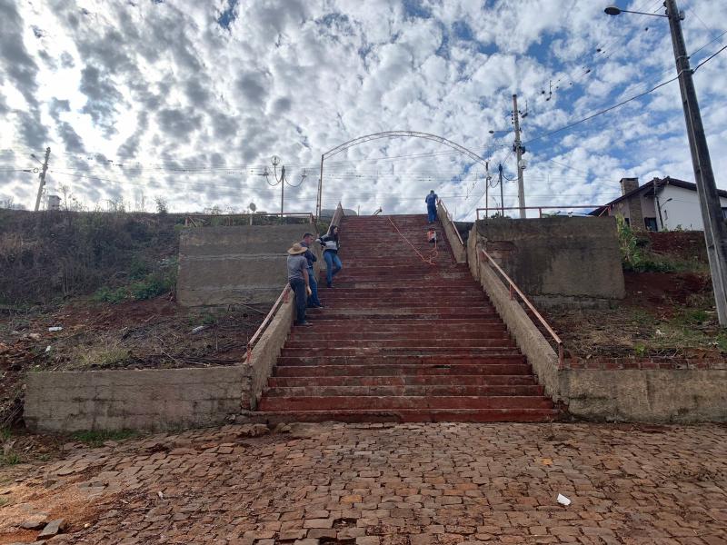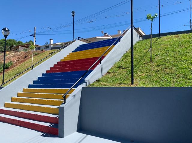 Na tarde de terça-feira (26), foi concluída a revitalização da escadaria localizada entre as Ruas Ângela Raymundi e Francisco Galvan, na sequência da Rua Prefeito Rovilho Basso.