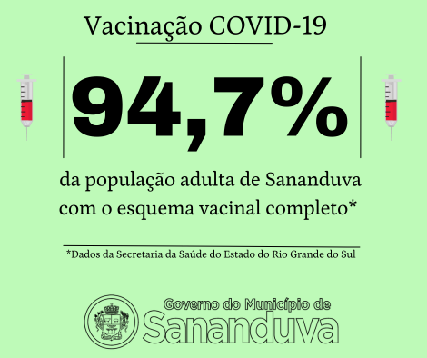 Segundo dados da Secretaria da Saúde do Estado do RS, Sananduva conta com 94,7% da população adulta com o esquema vacinal completo. Tal índice de vacinação faz com que o Município deixe de exigir a comprovação de vacinação contra a doença para ingresso em eventos, estabelecimentos ou locais de uso coletivo situados em Sananduva, conforme estabelece o Decreto Municipal nº 7198, de 23 de novembro de 2021.
