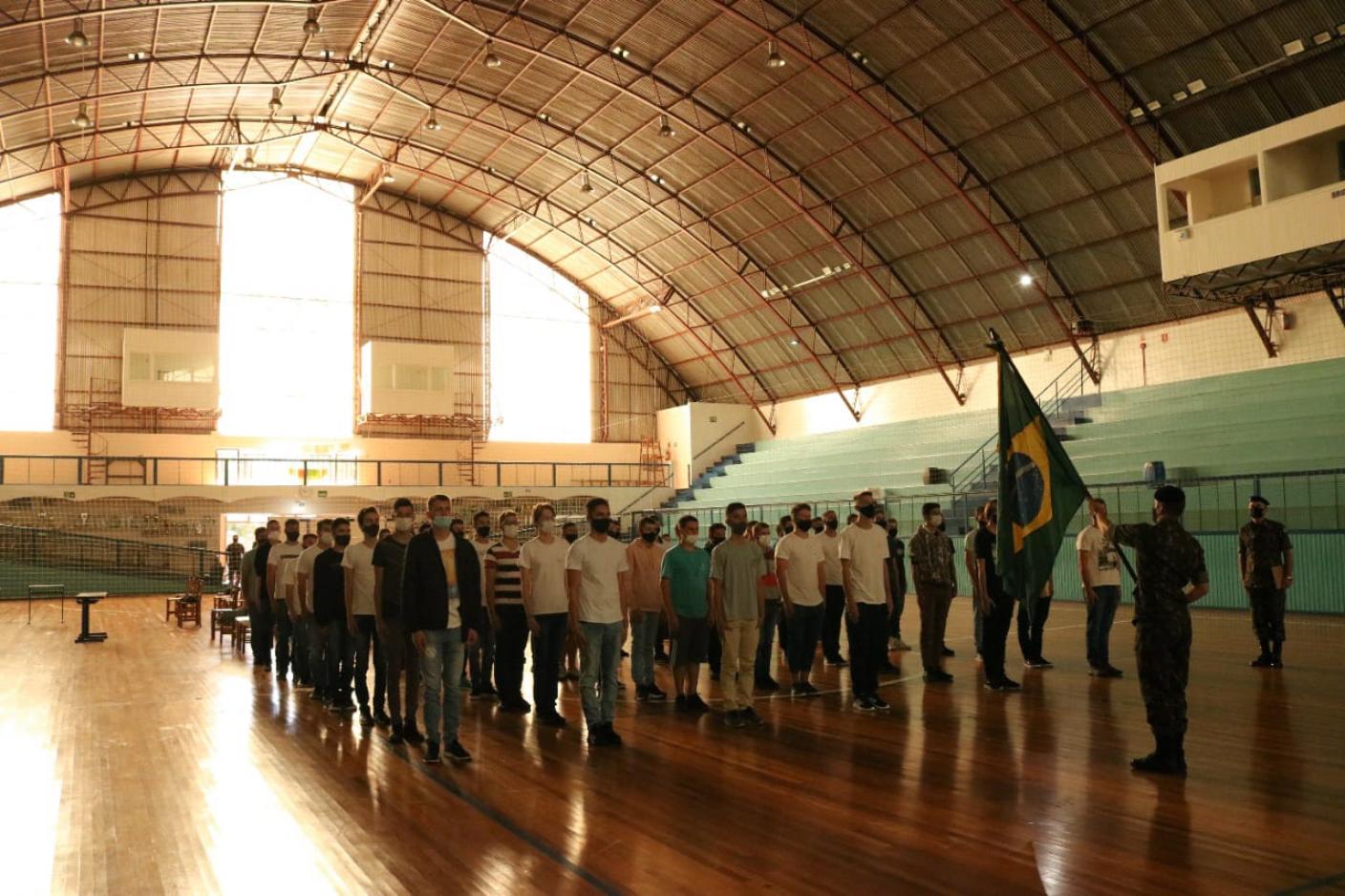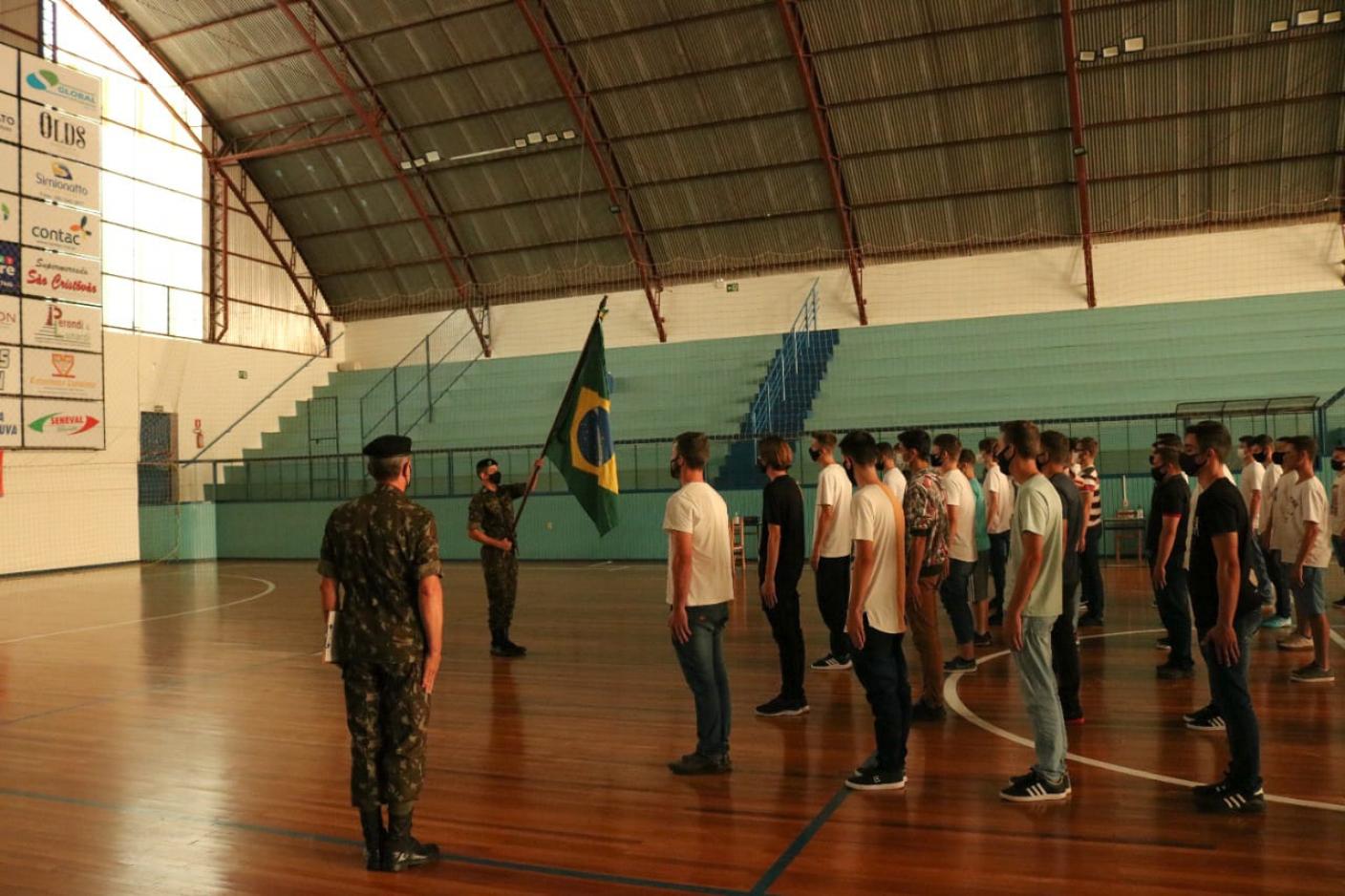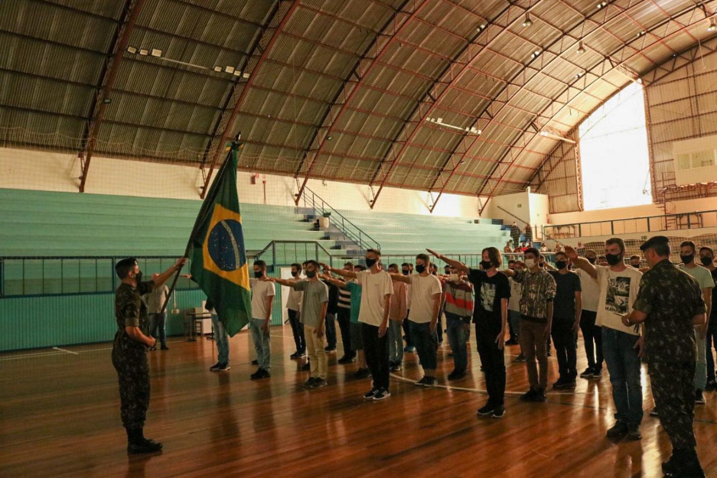 Aos jovens dispensados do serviço militar obrigatório junto às fileiras do Exército Brasileiro, foi realizado o juramento à Bandeira Nacional e recebimento do Certificado de Dispensa de Incorporação.