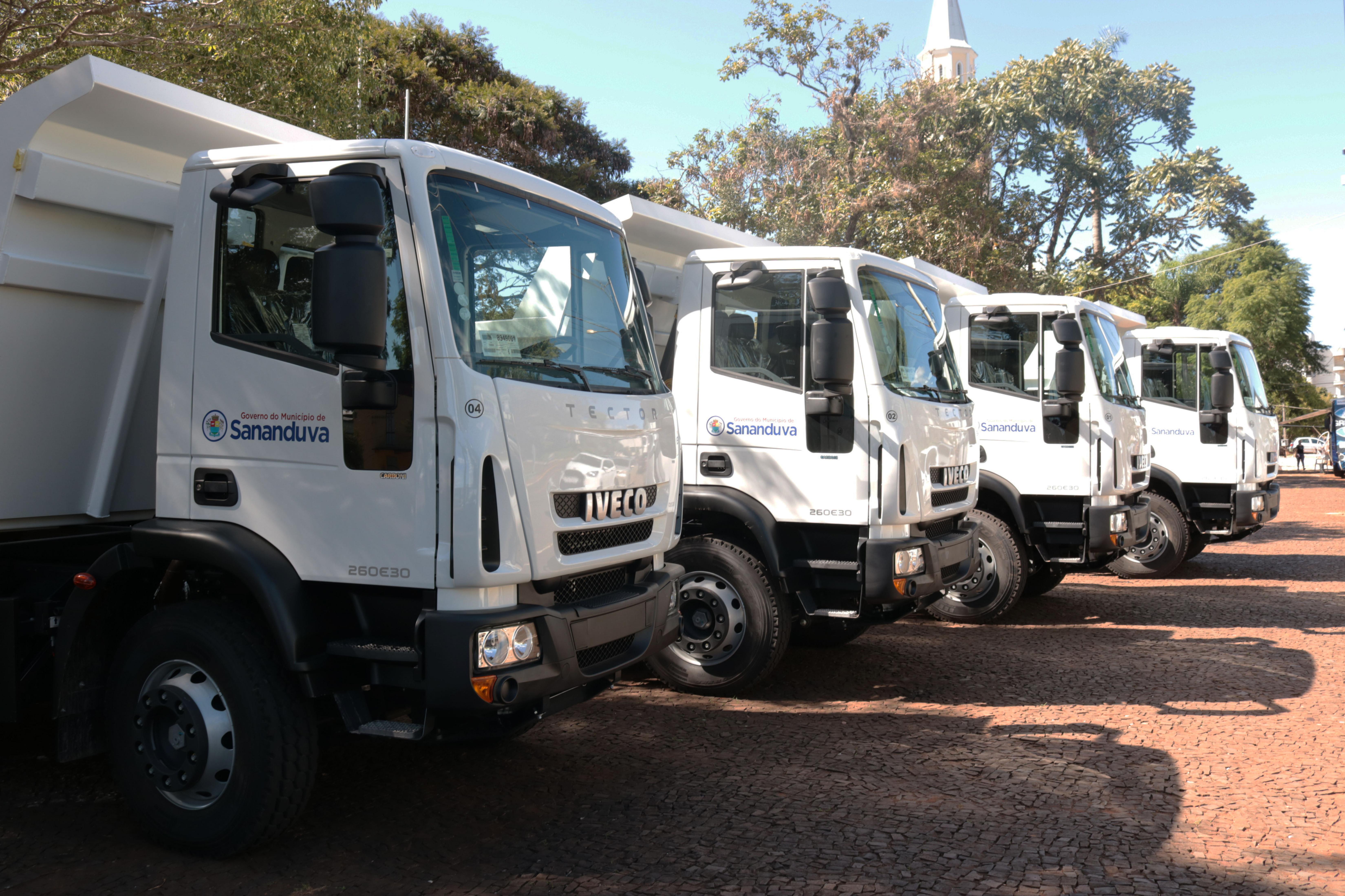 Quatro novos caminhões com caçamba passam a integrar a frota do município de Sananduva. Os veículos adquiridos recentemente somam o montante de R$ 2,2 milhões e serão utilizados na prestação de serviços à população. A entrega aconteceu na tarde de quarta-feira (13).
