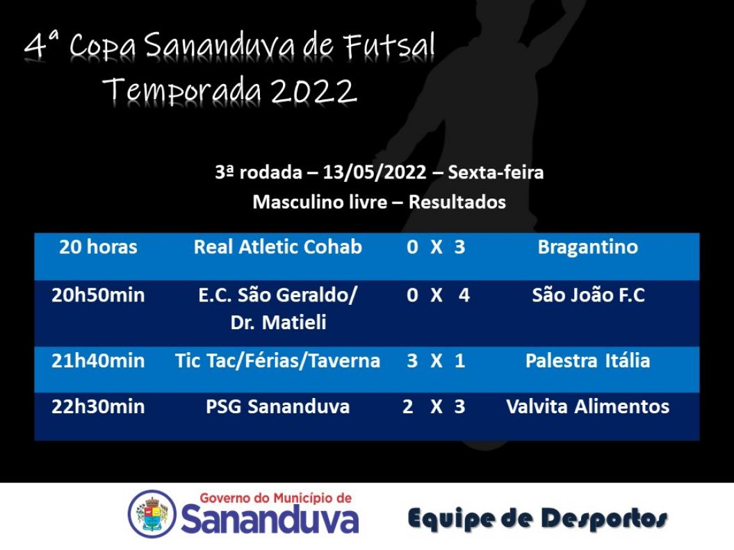 Na última semana teve início mais uma edição da Copa Sananduva de Futsal. Os jogos acontecem sempre nas terças e quintas com início às 19h30min, e nas sextas com início às 20h, no Centro Esportivo Municipal Victor Camozzato. A entrada é gratuita.