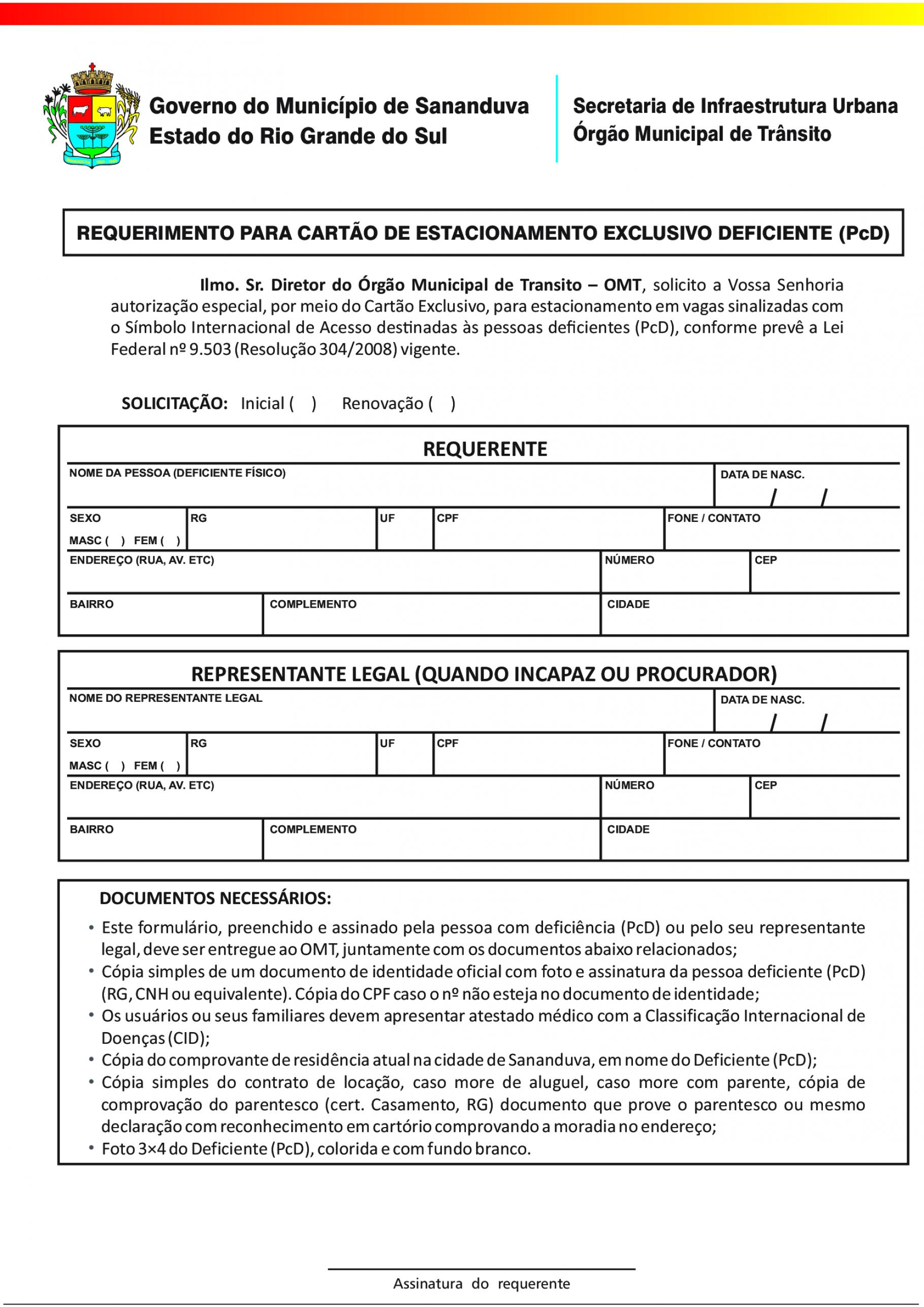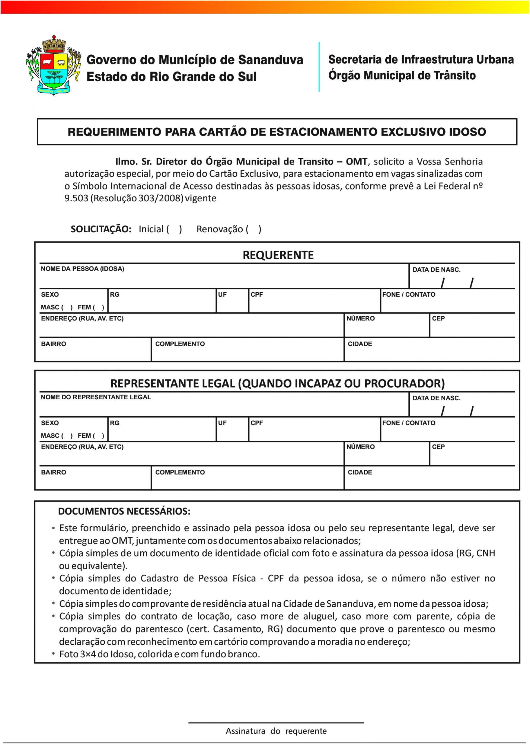 O requerimento preenchido e a documentação solicitada deve ser apresentada na sede da Secretaria da Infraestrutura Urbana, na saída para Cacique Doble. Informações podem ser obtidas pelo telefone (54) 3343.1583.