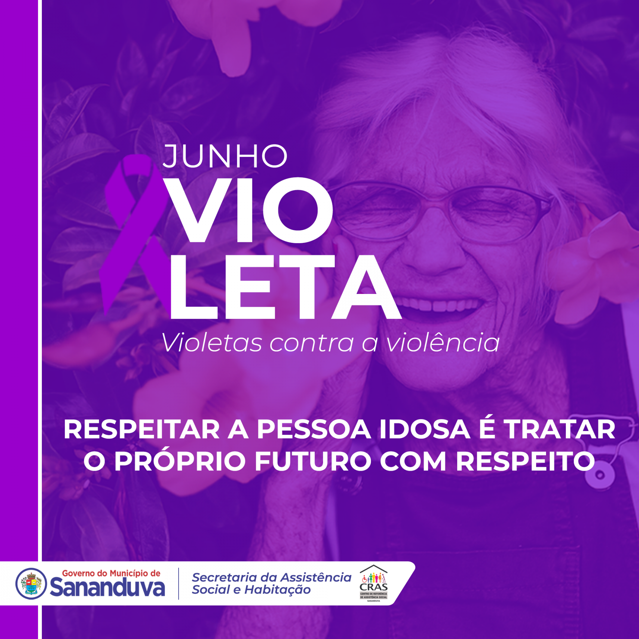 Durante o mês de junho, o Governo do Município de Sananduva, através da Secretaria da Assistência Social e Habitação - Centro e Referência de Assistência Social (CRAS), vai realizar a Campanha Junho Violeta. O objetivo é mobilizar a sociedade para o trabalho de conscientização da violência contra a pessoa idosa, alertando para a responsabilidade de cada um na construção de uma sociedade que respeite e garanta os direitos dos idosos.