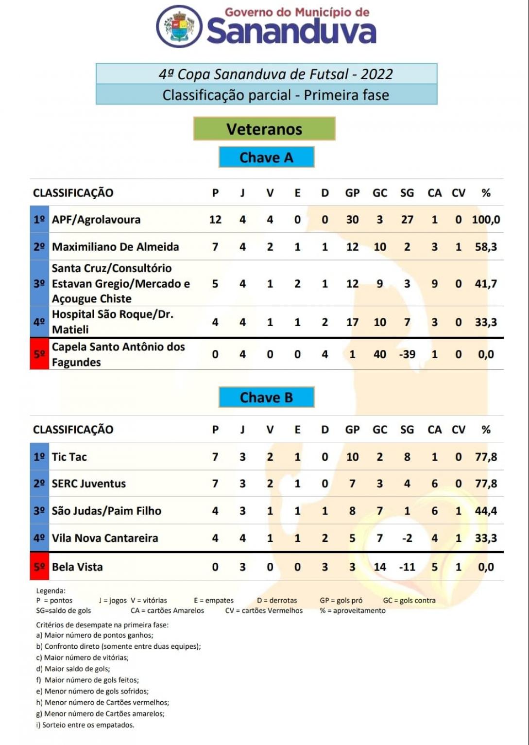 Confira os resultados da oitava semana dos jogos, juntamente com a classificação e artilharia de todas as categorias da competição: