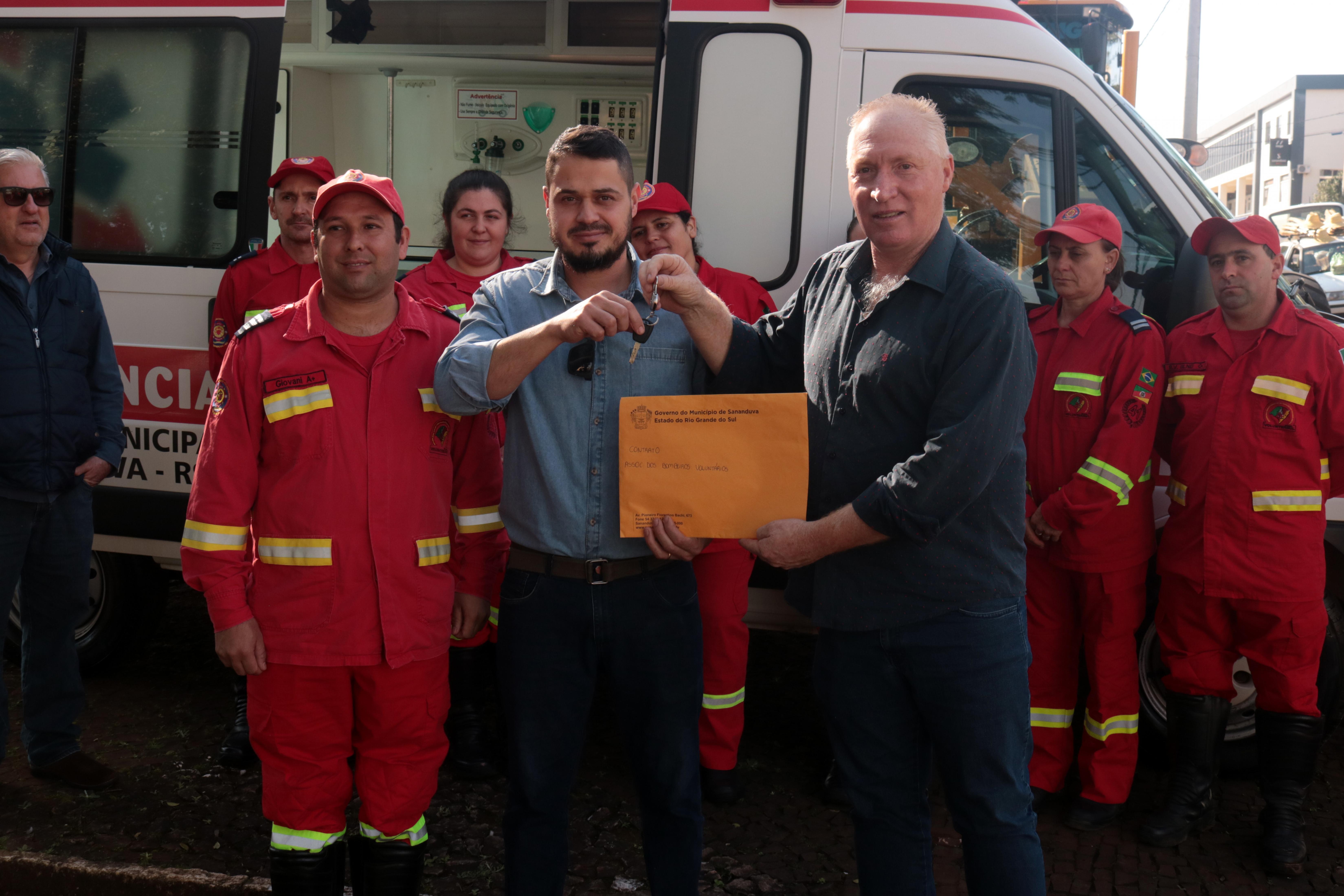 Na última semana, o prefeito Vermelho Pansera fez a entrega de uma camionete equipada para ambulância aos Bombeiros Voluntários de Sananduva. O veículo destina-se a auxiliar nas situações de emergências atendidas pela corporação.