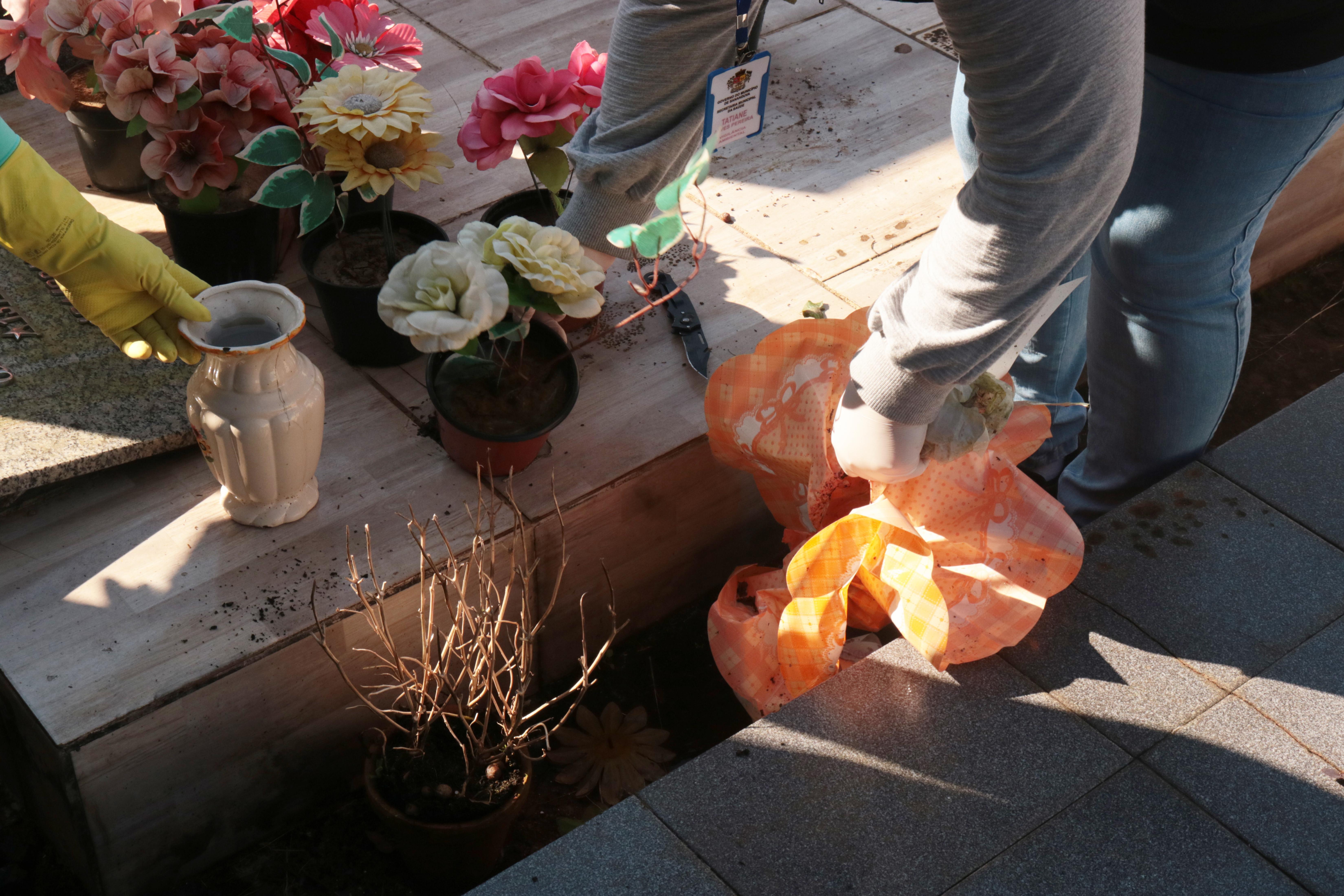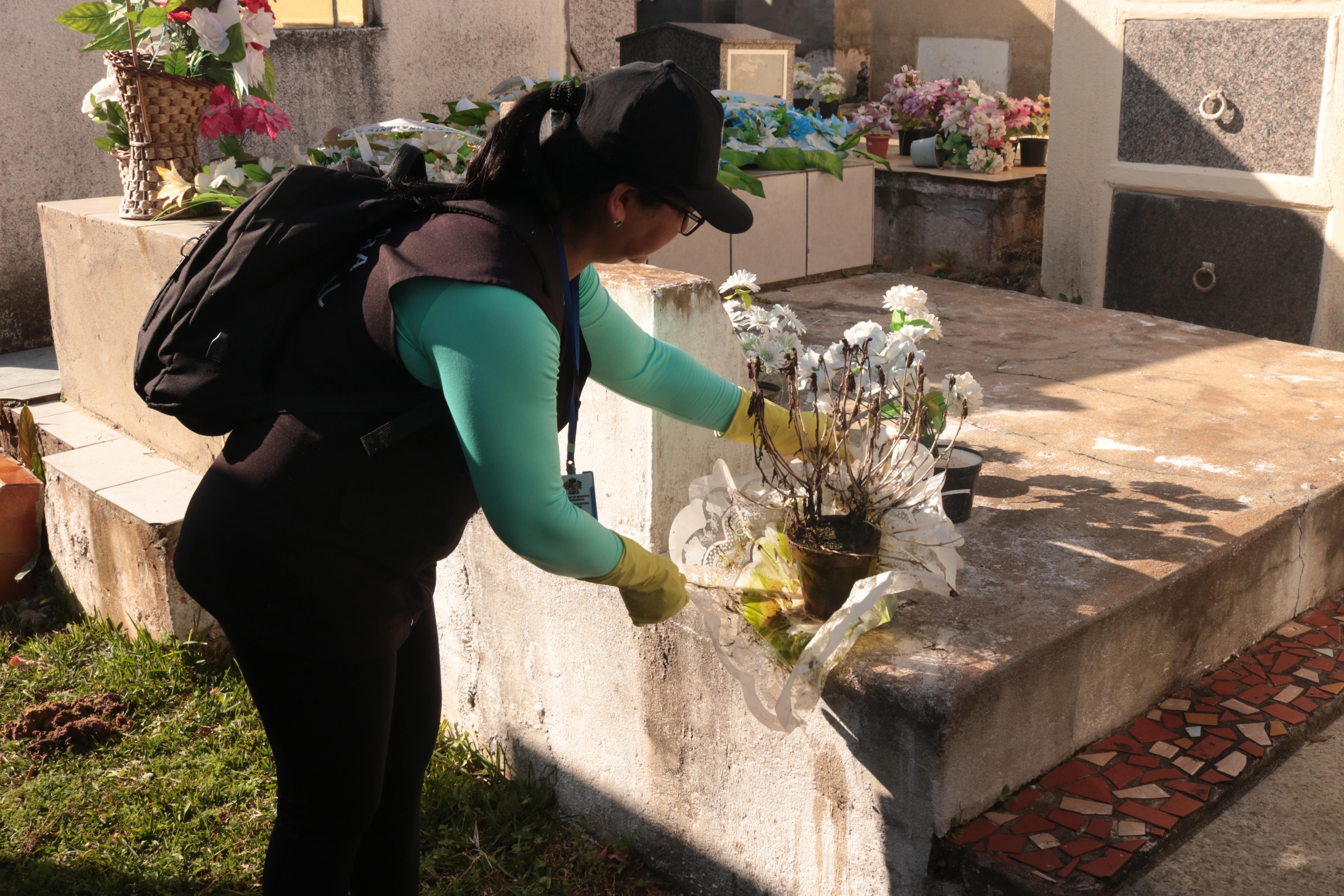 Na última semana, as agentes de combate à endemias e de saúde, vinculadas à Secretaria da Saúde, realizaram uma vistoria no Cemitério Municipal Papa João Paulo II, a fim de eliminar possíveis criadouros do mosquito Aedes aegypti, causador de doenças como a dengue, zika e chikungunya.