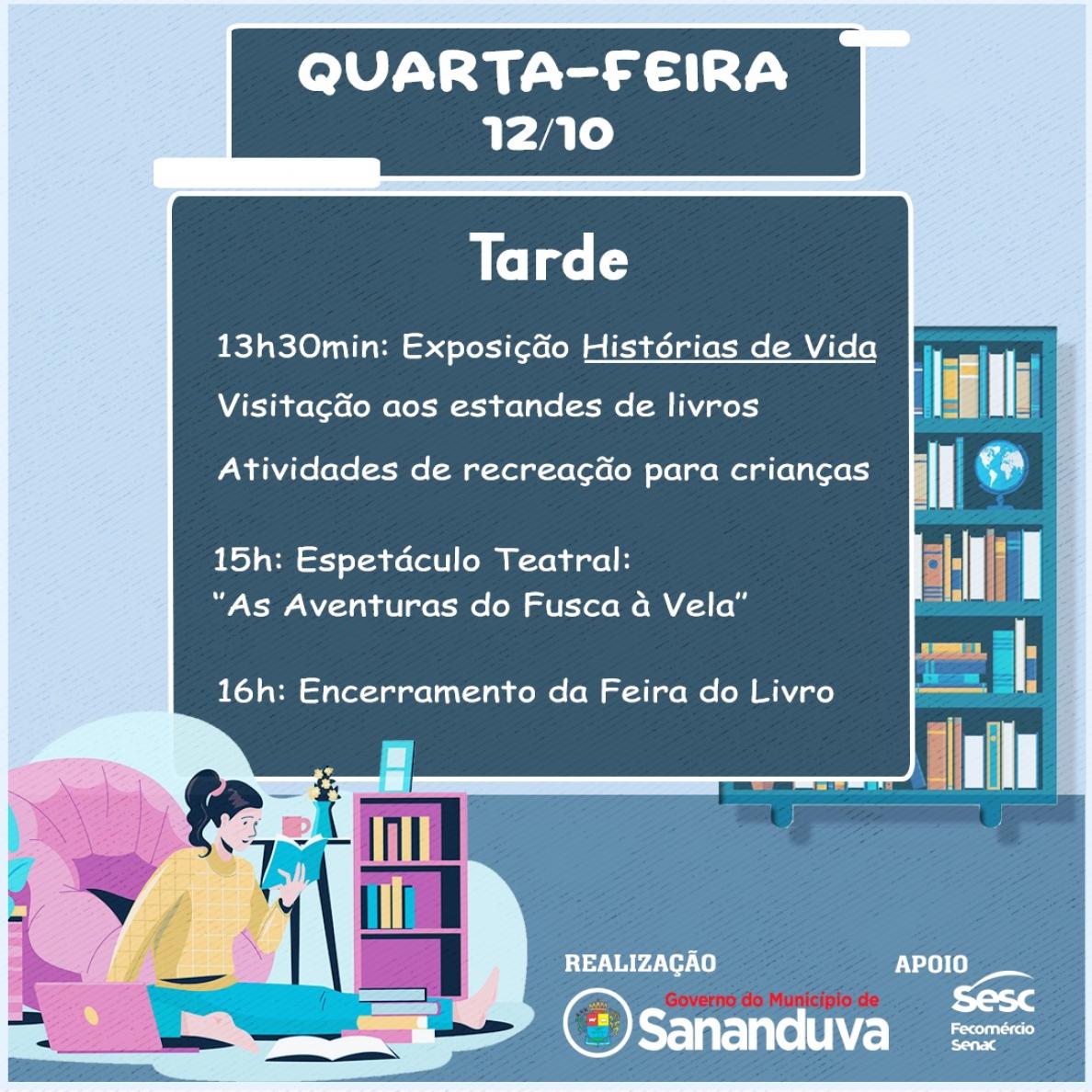 Entre os dias 10 e 12 de outubro acontece a 11ª edição da Feira do Livro de Sananduva, no Centro Comunitário Sananduvense.