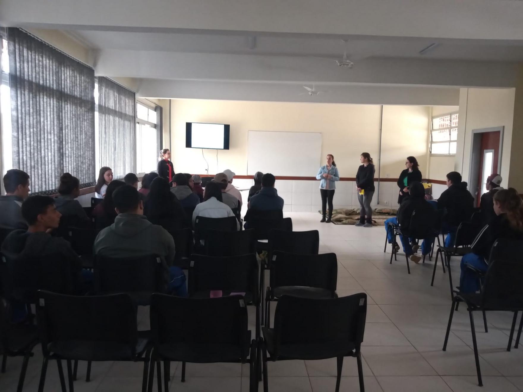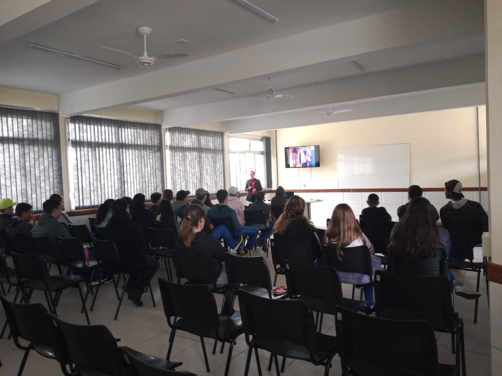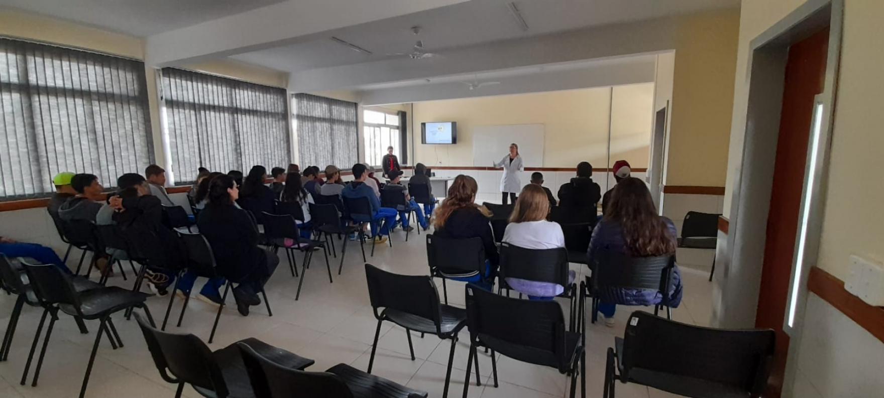 Na última quinta-feira (13), a médica Gabriela Betiolo Bombarda e a enfermeira Vanusa dos Santos Zenere, da UBS São Cristóvão, estiveram na E.M.E.F. Gentil Antonio Tonial para uma conversa com os alunos do 8º ano. Entre os temas abordados pelas profissionais estavam a sexualidade, a gravidez na adolescência, drogas, infecções sexualmente transmissíveis e, também, os malefícios do cigarro eletrônico. A ação faz parte do programa Saúde na Escola.