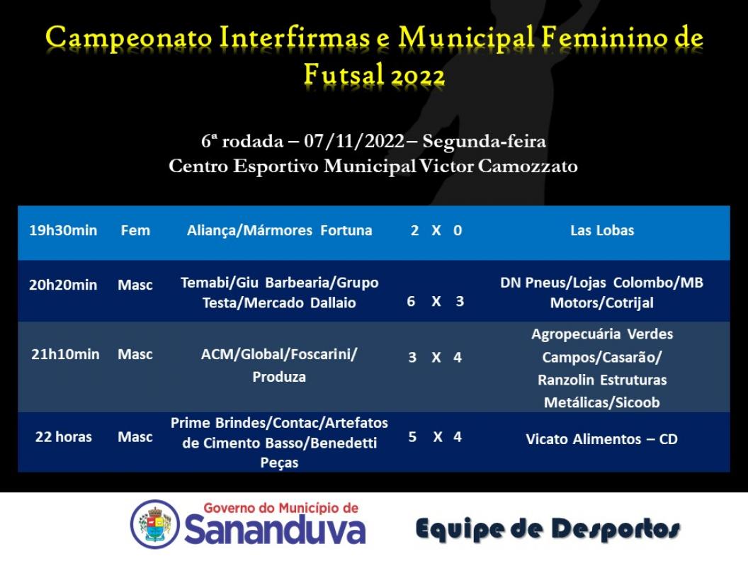 Na última semana findou mais uma rodada de jogos do Campeonato Interfirmas e Municipal Feminino de Futsal 2022.