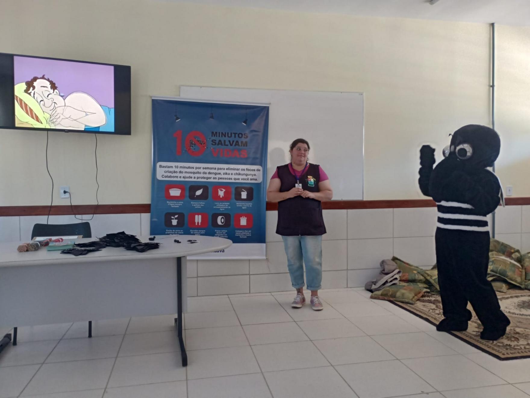 Para auxiliar na conscientização sobre a importância de combater a dengue, as agentes de combate a endemias estiverem realizando trabalho educativo nas Escolas Eldy Maria Pansera, Gentil Antonio Tonial e Santa Teresinha. Para 2023, novas ações estão sendo programadas para que o trabalho seja desenvolvido nas demais escolas do Município.