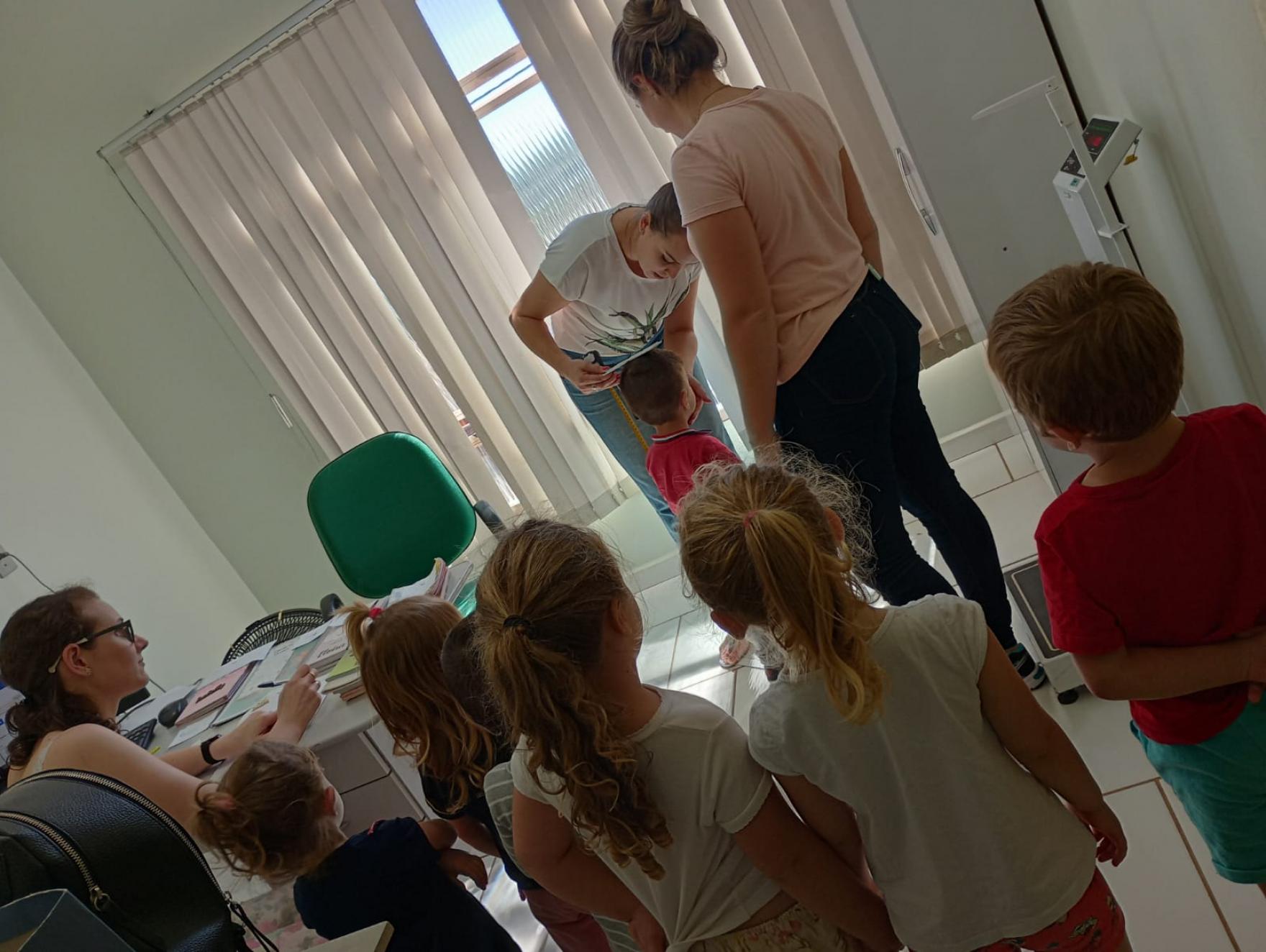 Na manhã do dia 06 de abril, os alunos da Escola Gentil Antonio Tonial participaram de uma atividade sobre vacinas. Na Escola Assis Brasil, as profissionais da Unidade trabalharam o tema da saúde bucal, na tarde do dia 10 de abril. Já com alunos da educação infantil da Escola Tia Salete, foram abordados os temas de alimentação saudável e vacinas, na terça (11) e quinta-feira (13).