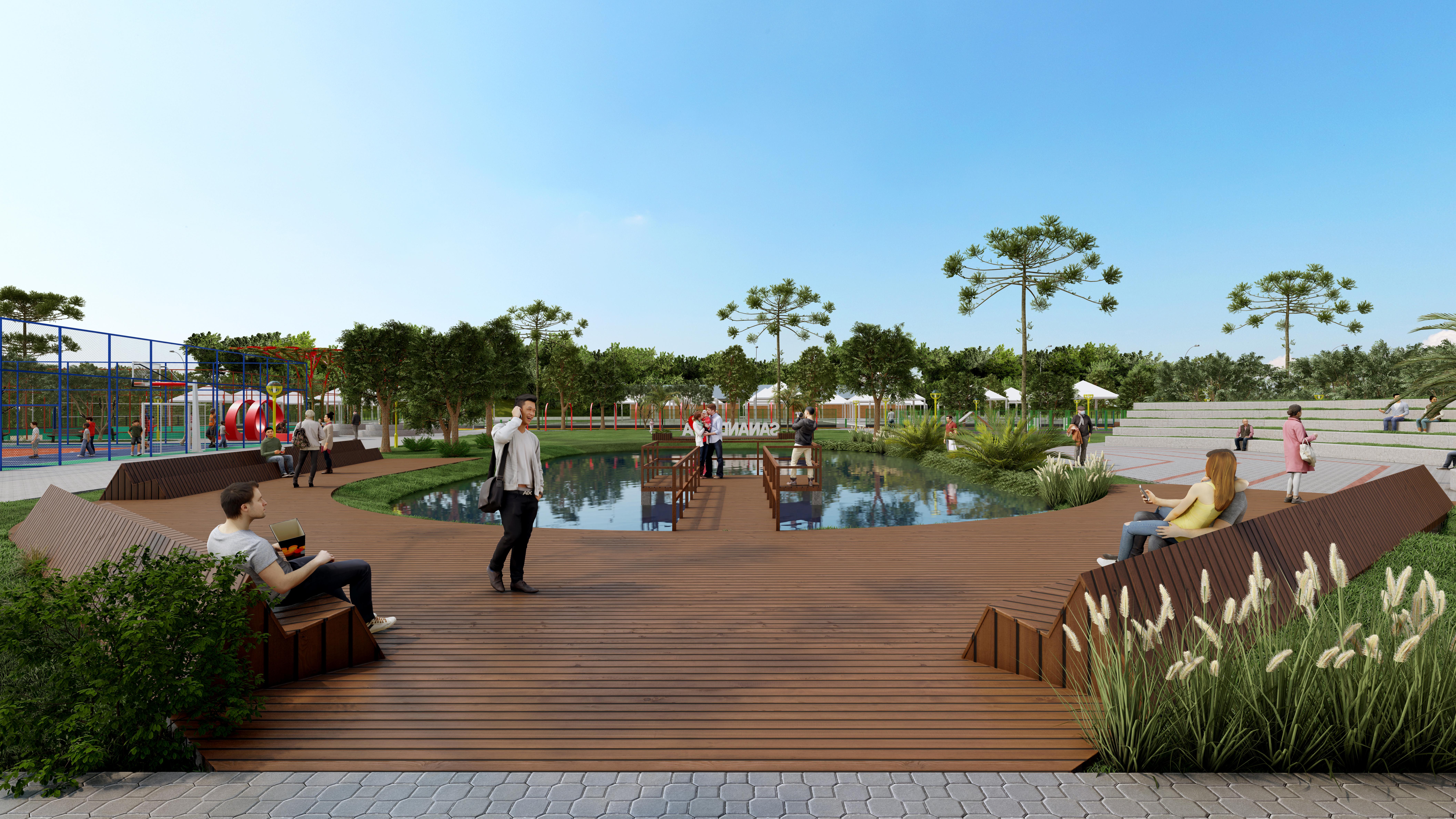 Projetado em 5,78 hectares, o espaço vai contar com ciclovia, pista de caminhada, chimarródromo, quadras de vôlei de areia, quadra de tênis, quadra poliesportiva, academia ao ar livre, pet park, pista de skate, playground, banheiros, lago com deck, anfiteatro, paisagismo e vários espaços para convivência.