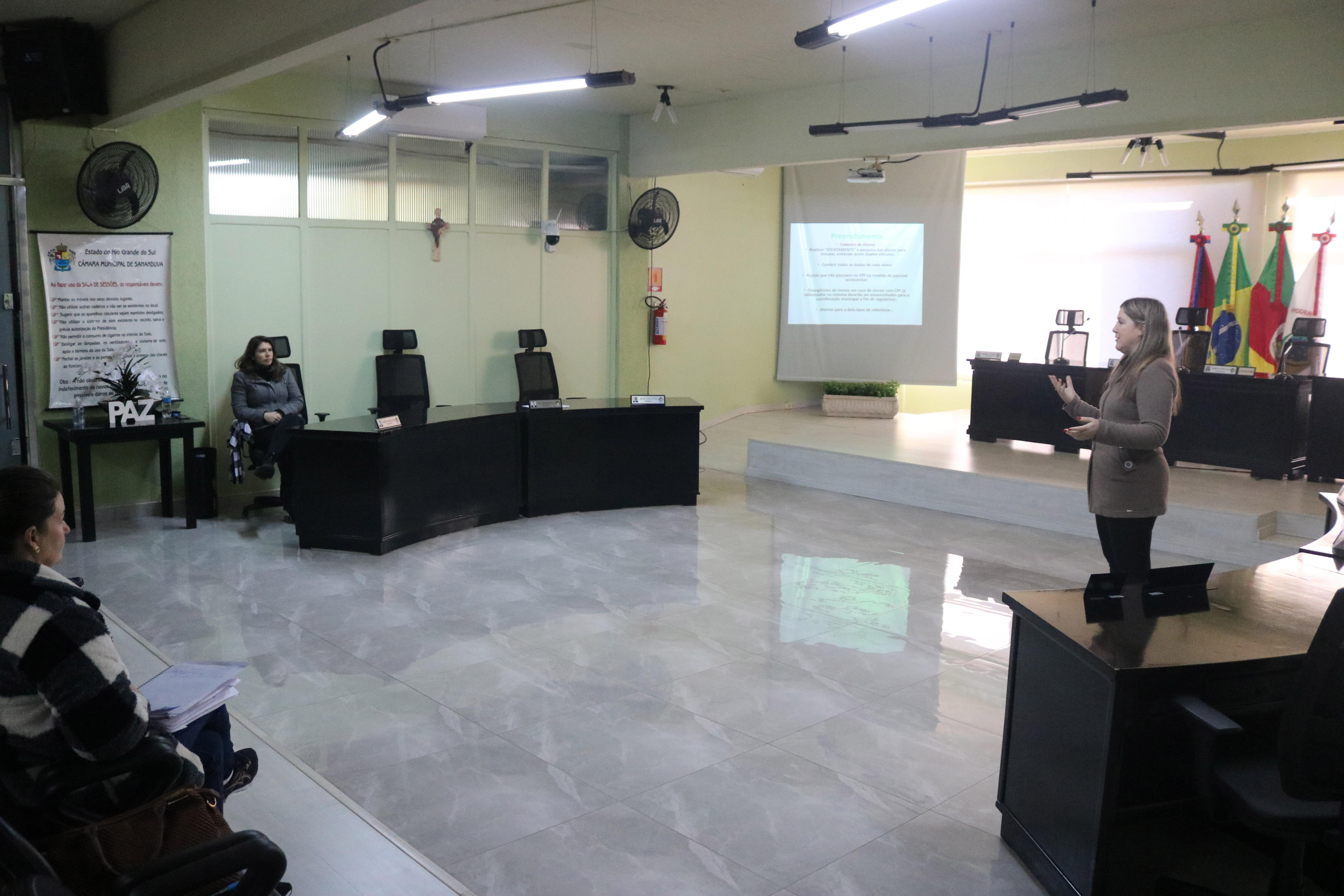 Já nesta terça-feira, dia 20, com a finalidade de repassar as informações referentes à formação, aconteceu na Câmara de Vereadores um encontro com os gestores e secretários escolares que possuem perfil executor no sistema Educacenso, utilizado para coleta das informações do censo escolar.