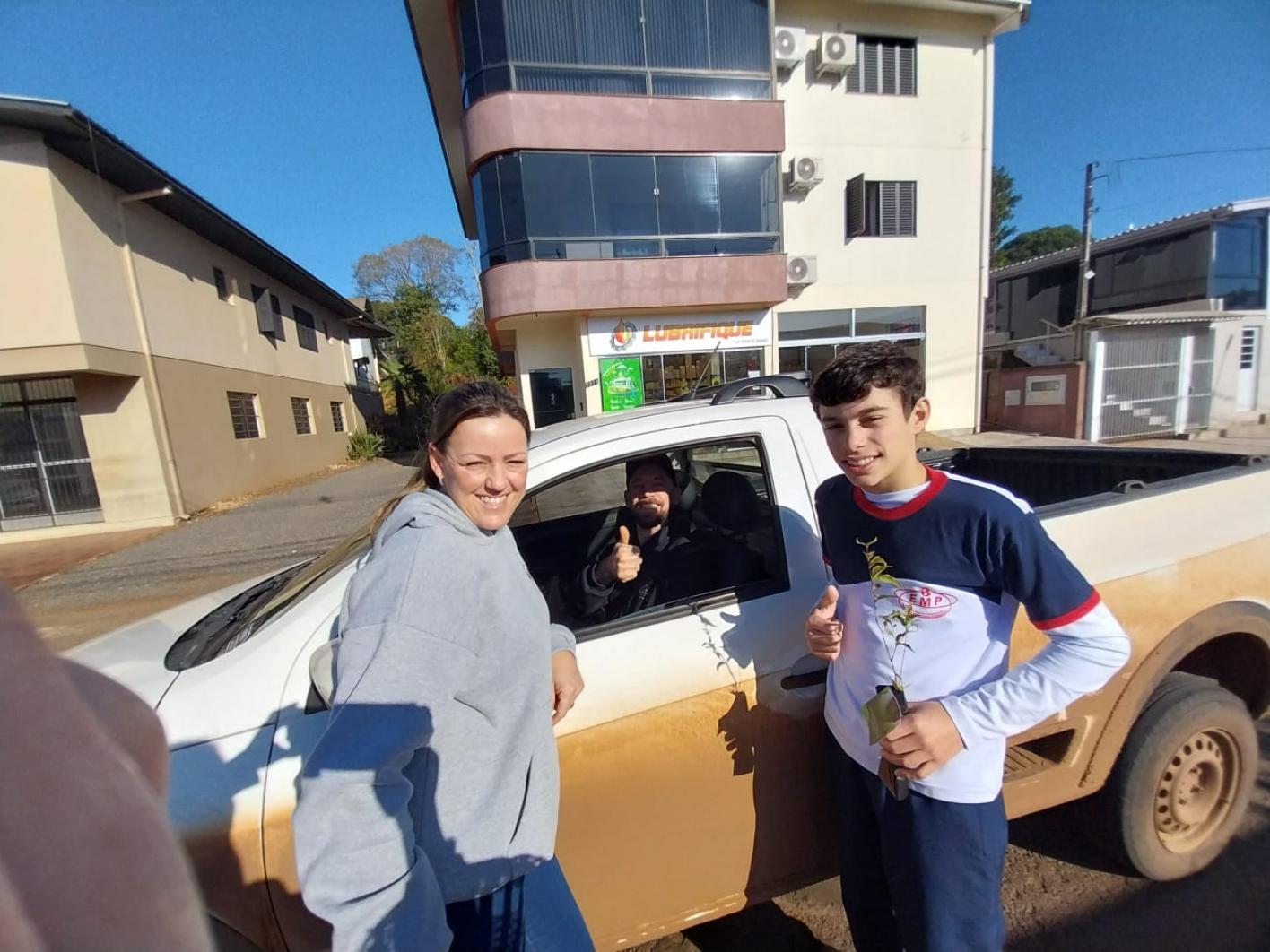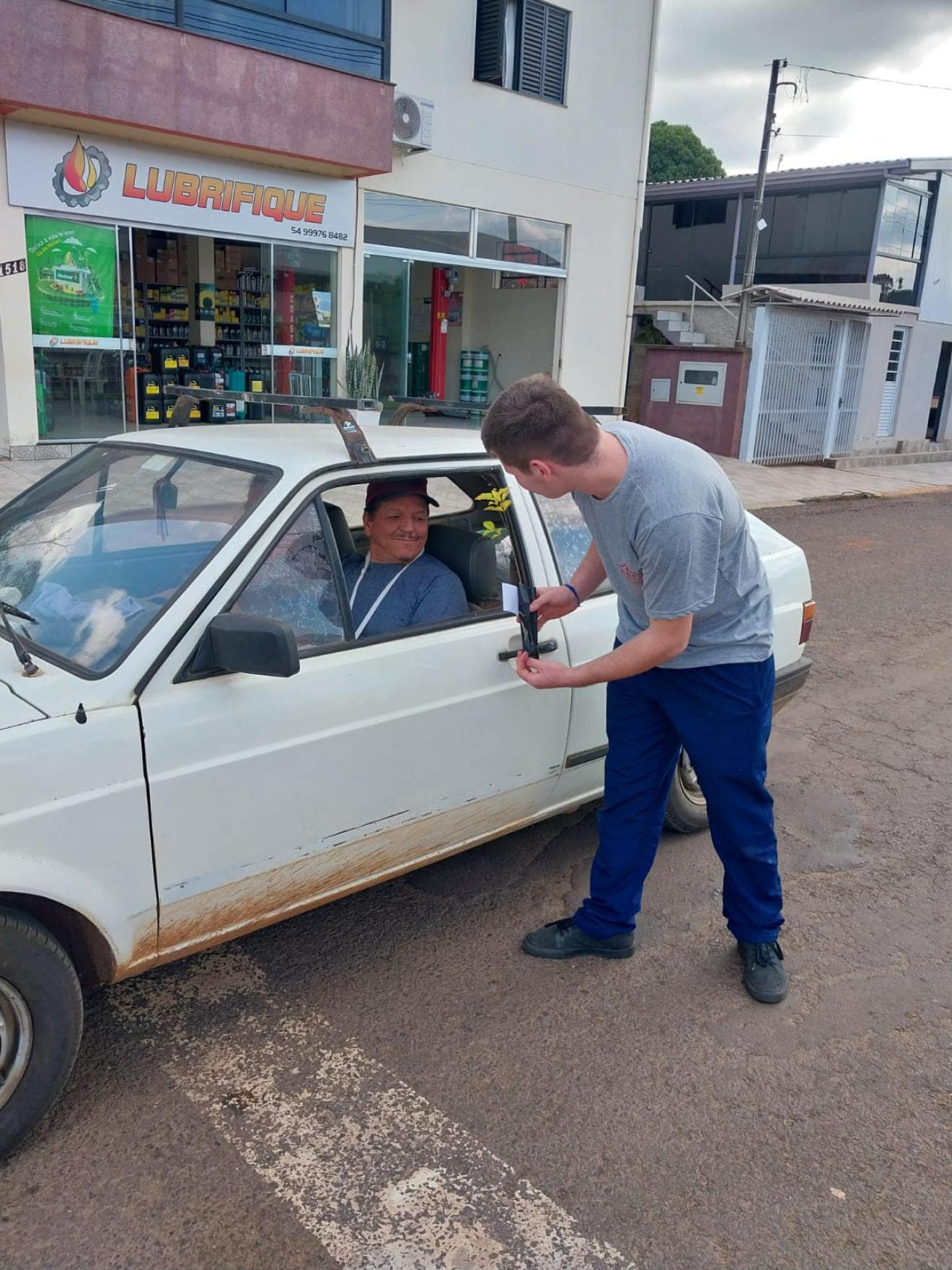 Os alunos do 9º ano realizaram um pedágio consciente, em que distribuíram mudas frutíferas para conscientizar a comunidade sobre a importância da arborização urbana e do consumo de alimentos saudáveis. Essa iniciativa não apenas contribui para a conscientização ambiental, mas também promove uma maior conexão entre os estudantes e a comunidade ao redor da escola.