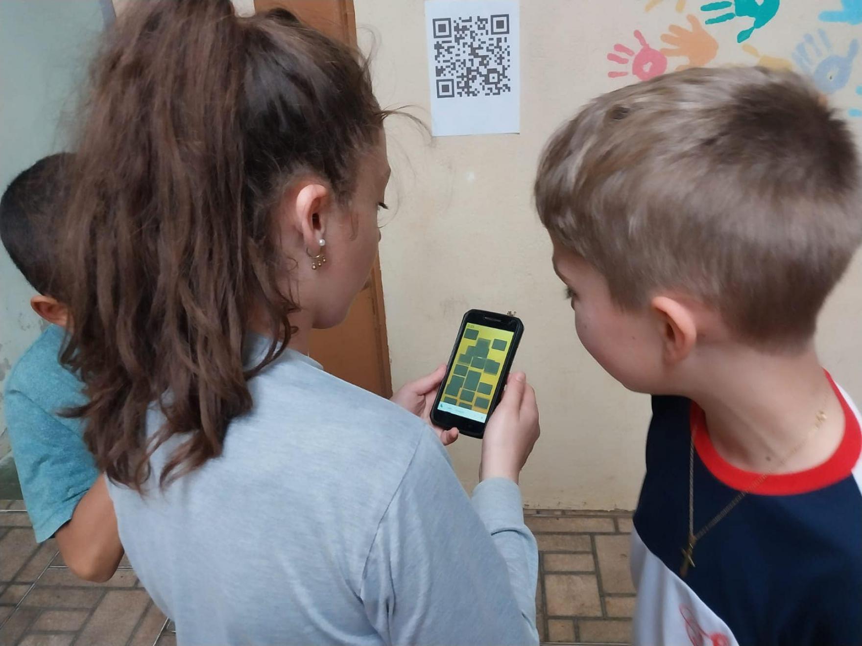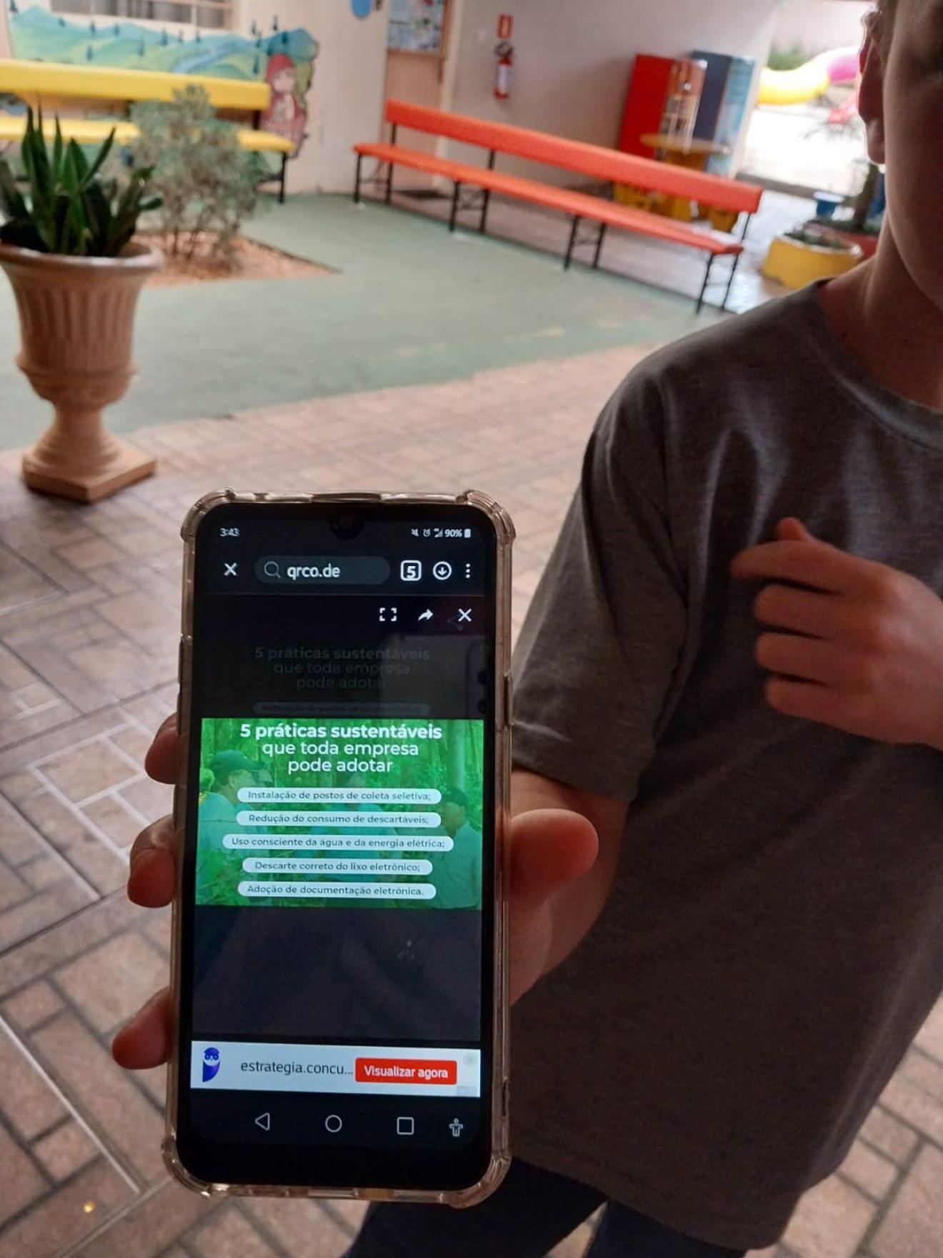 Outra atividade interessante foi a utilização de QR code espalhados pela escola. Os estudantes do 5º ao 9º ano utilizaram seus aparelhos celulares para fazer a leitura dos códigos, que continham jogos sobre sustentabilidade, vídeos curtos de conscientização, imagens e práticas sustentáveis. Essa abordagem tecnológica envolvente permitiu que os alunos aprendessem de forma interativa e divertida, explorando diferentes aspectos da sustentabilidade.