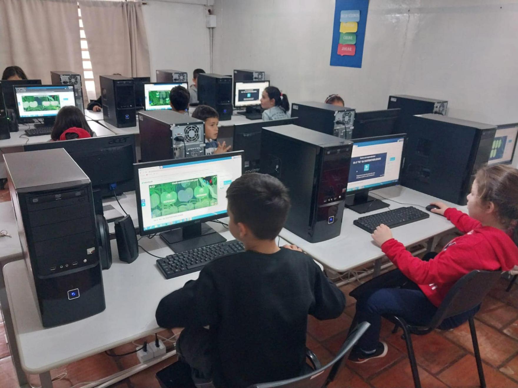 Além disso, os alunos do 2º ao 4º ano tiveram a oportunidade de participar de jogos educativos sobre sustentabilidade na sala de informática. Essa atividade lúdica despertou a curiosidade e o interesse das crianças em relação aos cuidados com o meio ambiente, ensinando conceitos valiosos de forma acessível e divertida.
