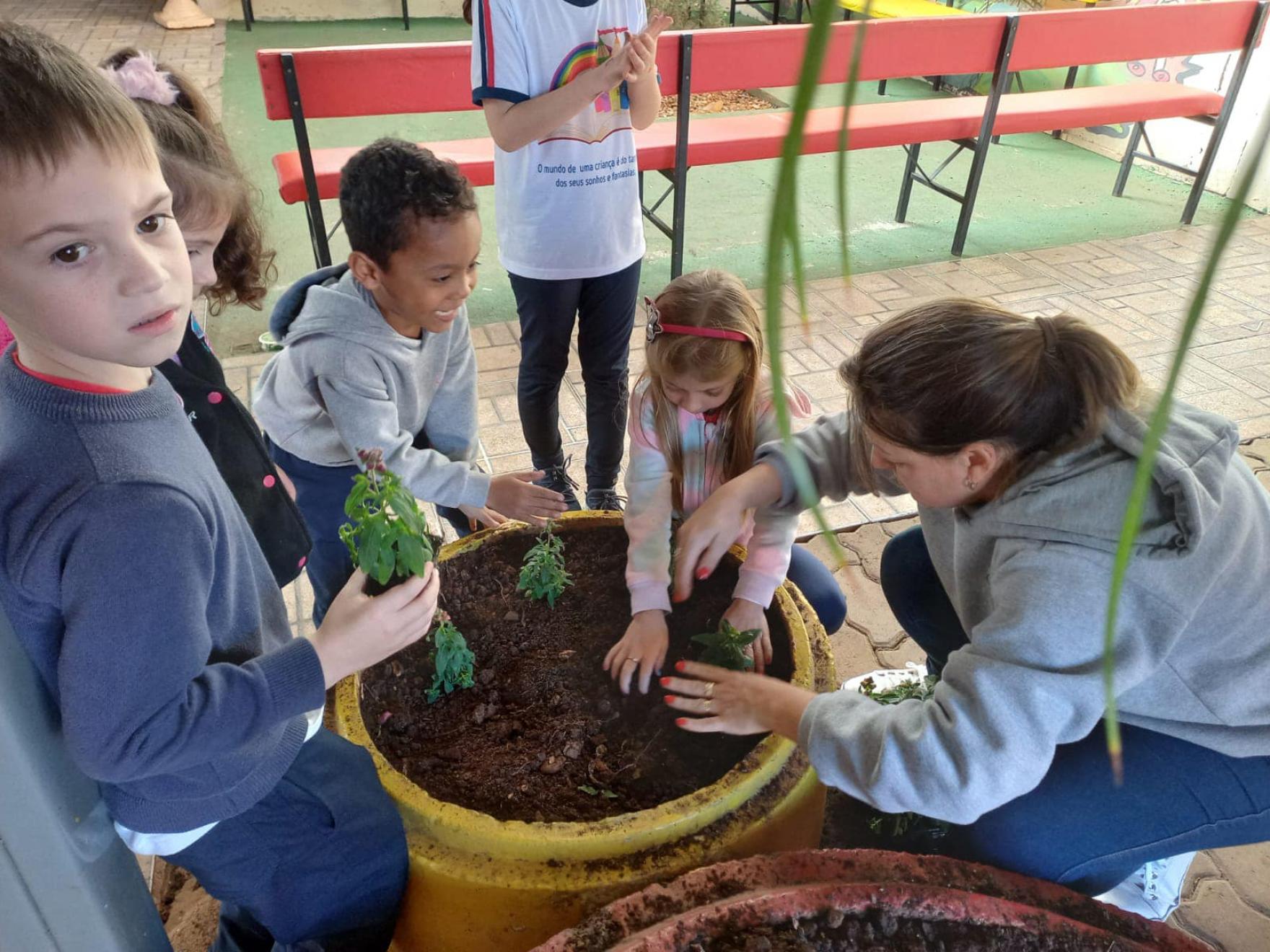 Incentivando a prática da jardinagem, os alunos da pré-escola II plantaram mudas de flores nos canteiros da escola. Essa atividade não apenas embeleza o ambiente escolar, mas também ensina às crianças sobre a importância da natureza e da responsabilidade de cuidar das plantas e do ecossistema ao seu redor.