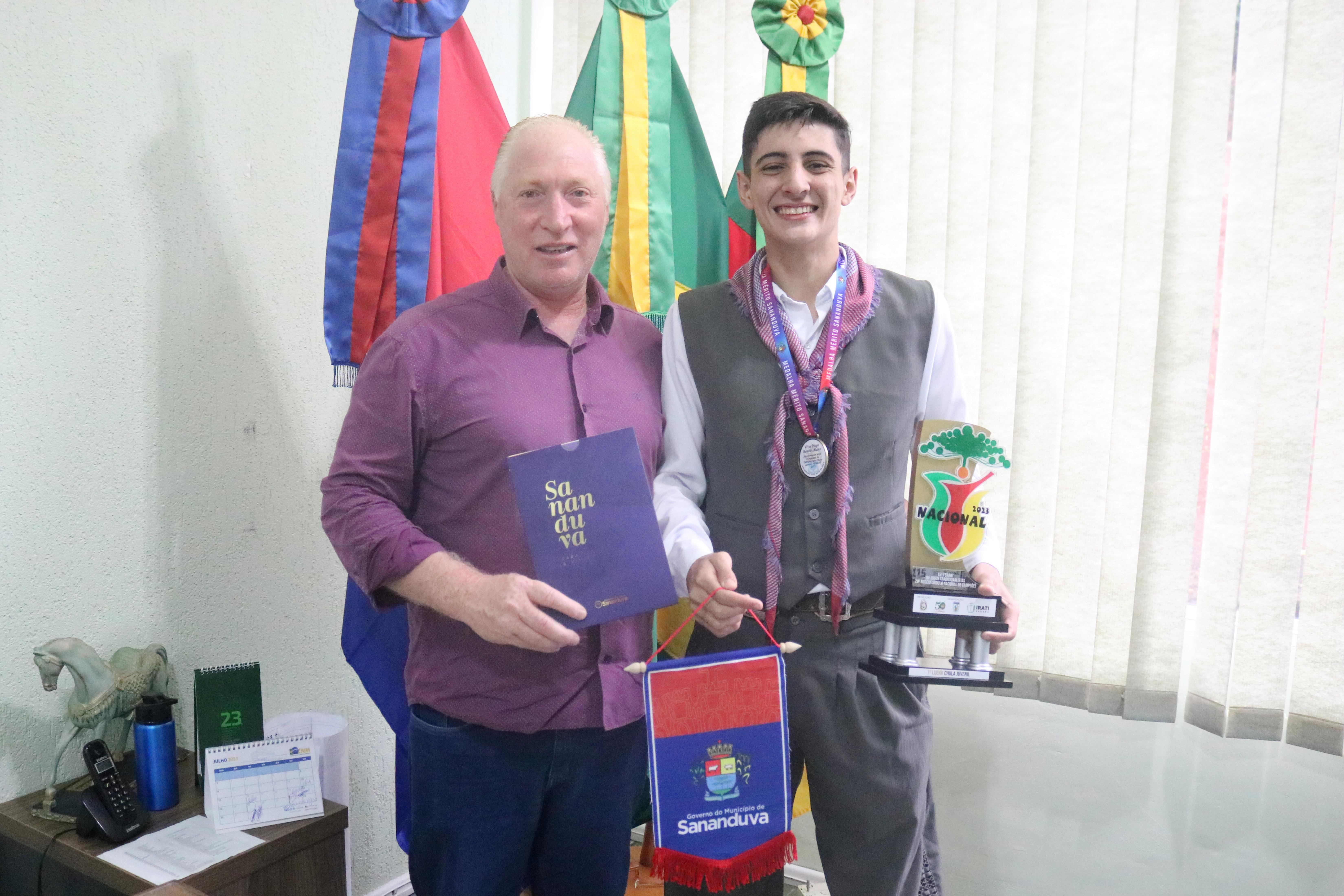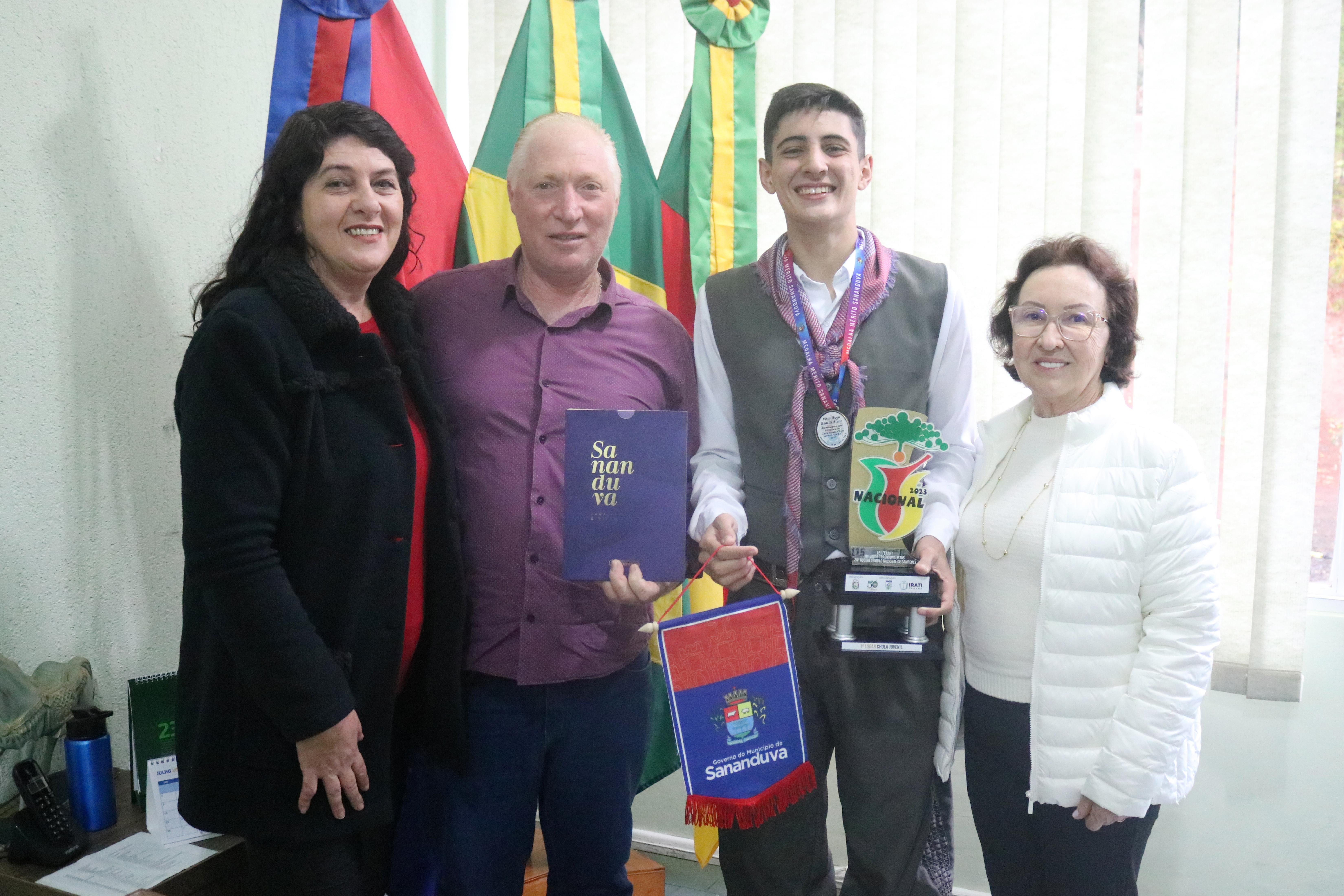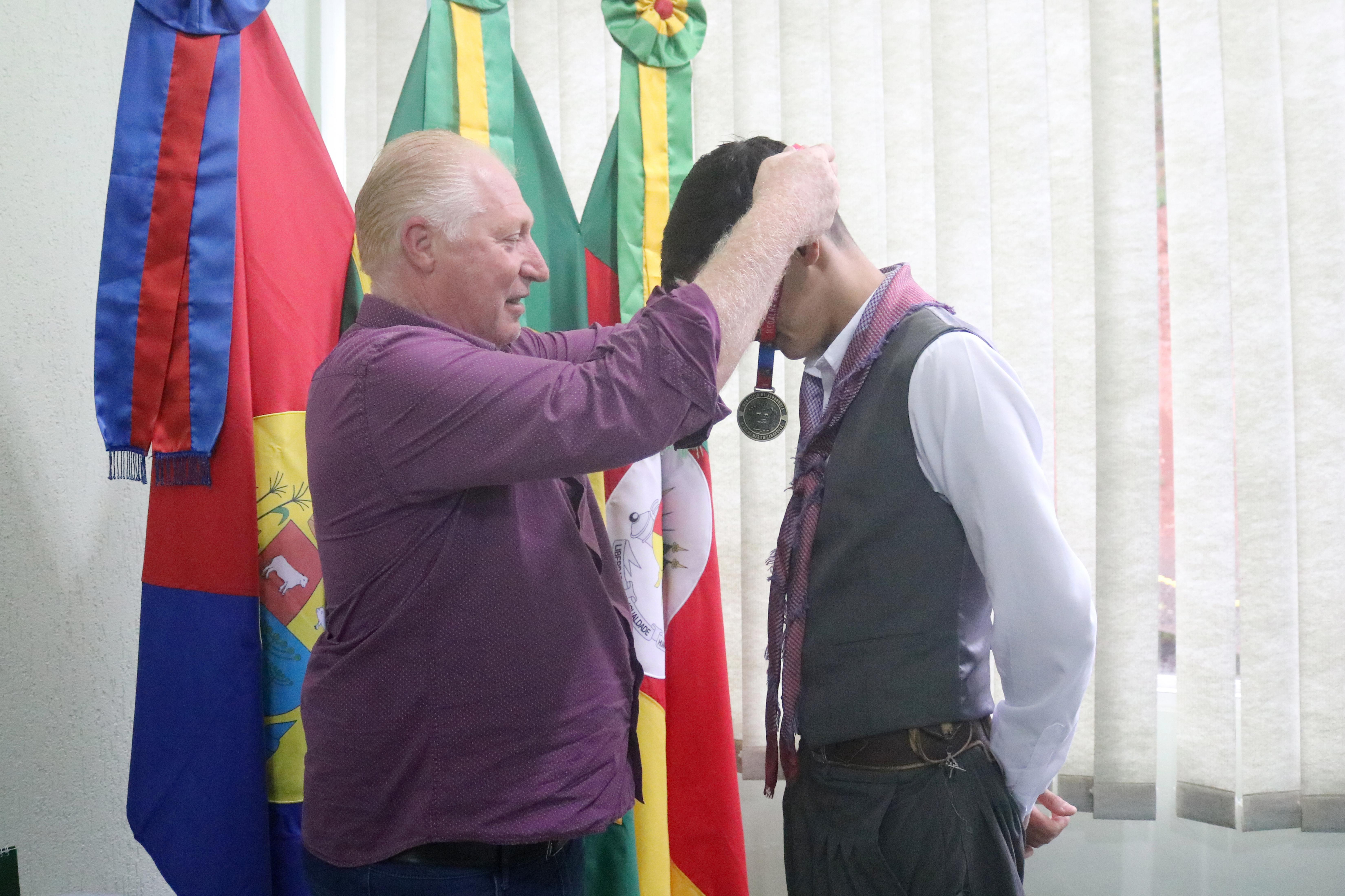 Para homenagear o campeão nacional na categoria, o prefeito Vermelho Pansera entregou a Medalha Mérito Sananduva a Vitor Hugo Benetti Alano em cerimônia realizada na última sexta-feira (28), no Gabinete do Prefeito Municipal.