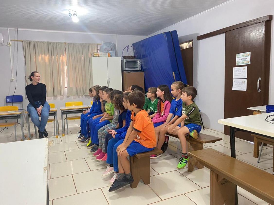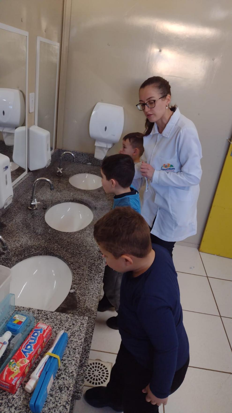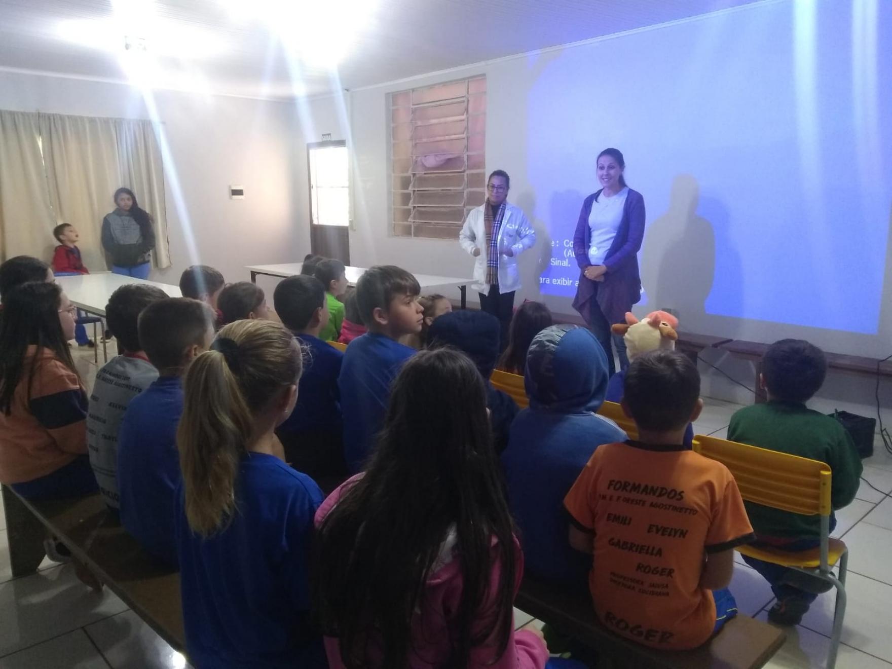 Outras atividades também foram realizadas pela UBS Dr.ª Eunice Morales Kaross, do Bairro Silos. Os profissionais da nutrição, da enfermagem, da psicologia e da educação física estiveram com os alunos da E.M.E.F. Oreste Agostinetto. Já os alunos da E.M.E.I. Nona Amábile realizam escovação supervisionada com profissional da odontologia.