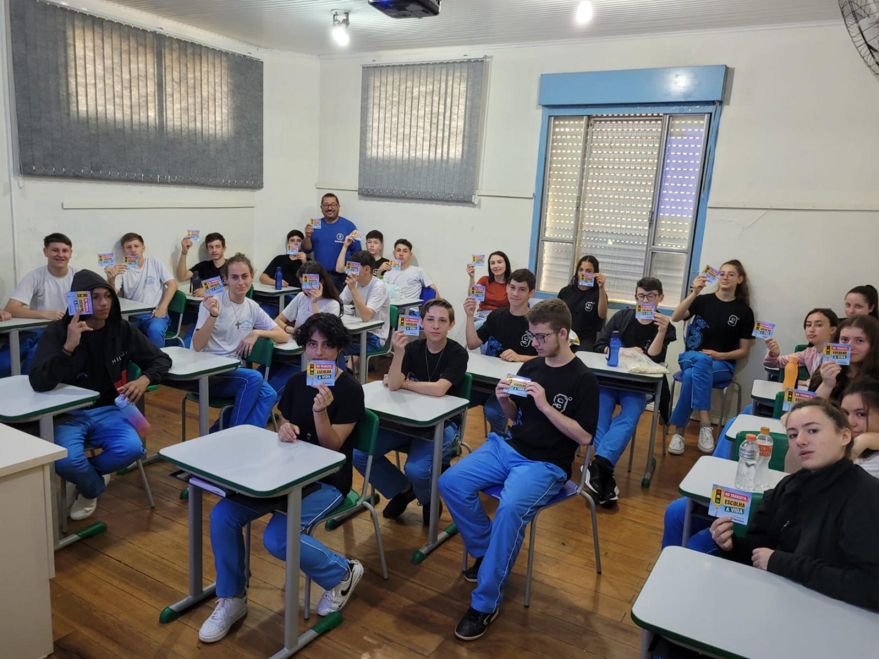 Em Sananduva, o diretor do Órgão Municipal de Trânsito, José Fernando da Silva, esteve visitando escolas do Município, a fim de orientar os estudantes sobre a campanha. Na oportunidade, também realizou a entrega de adesivos para serem colados nos veículos, em prol da conscientização de um trânsito mais seguro.