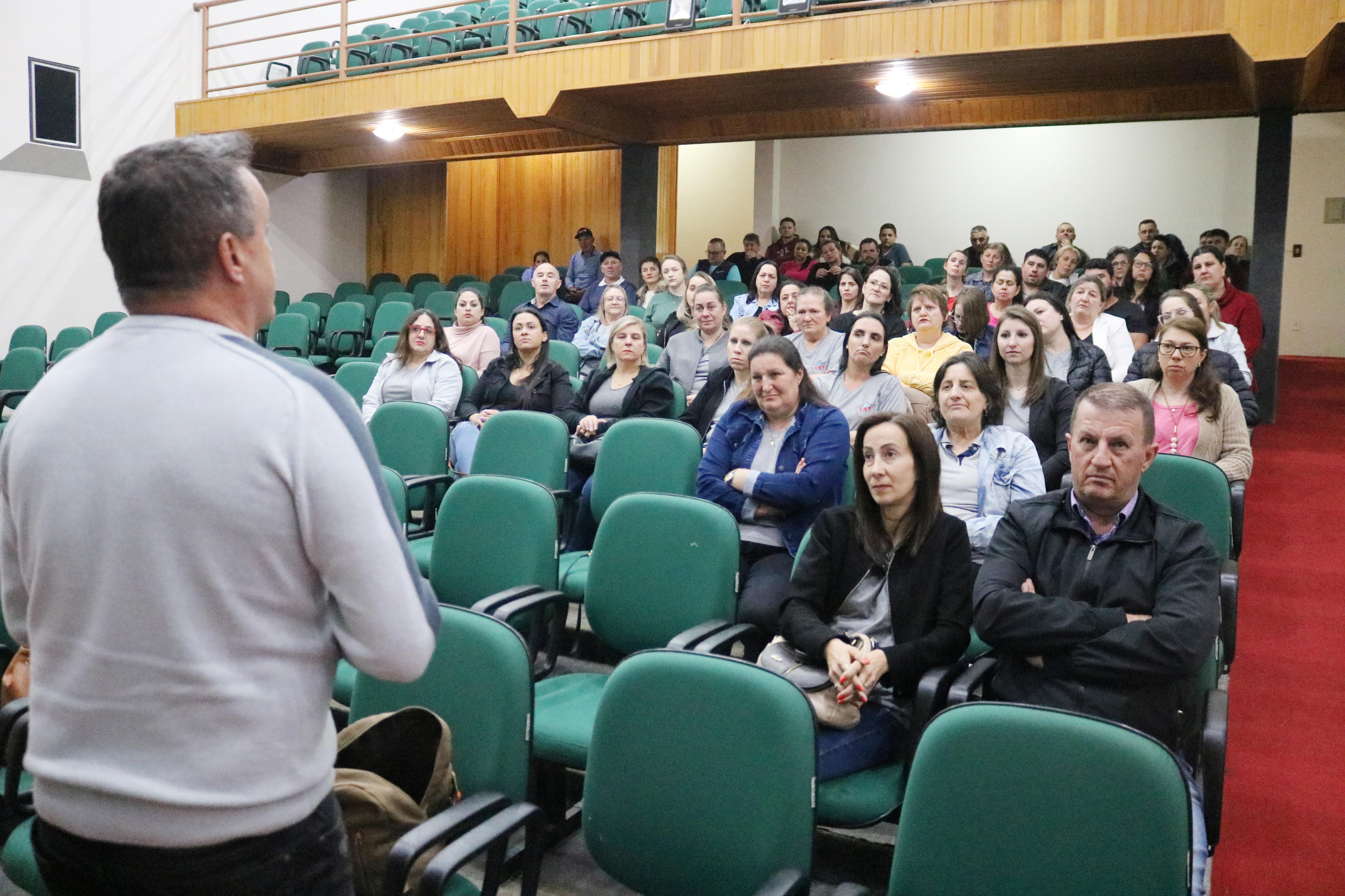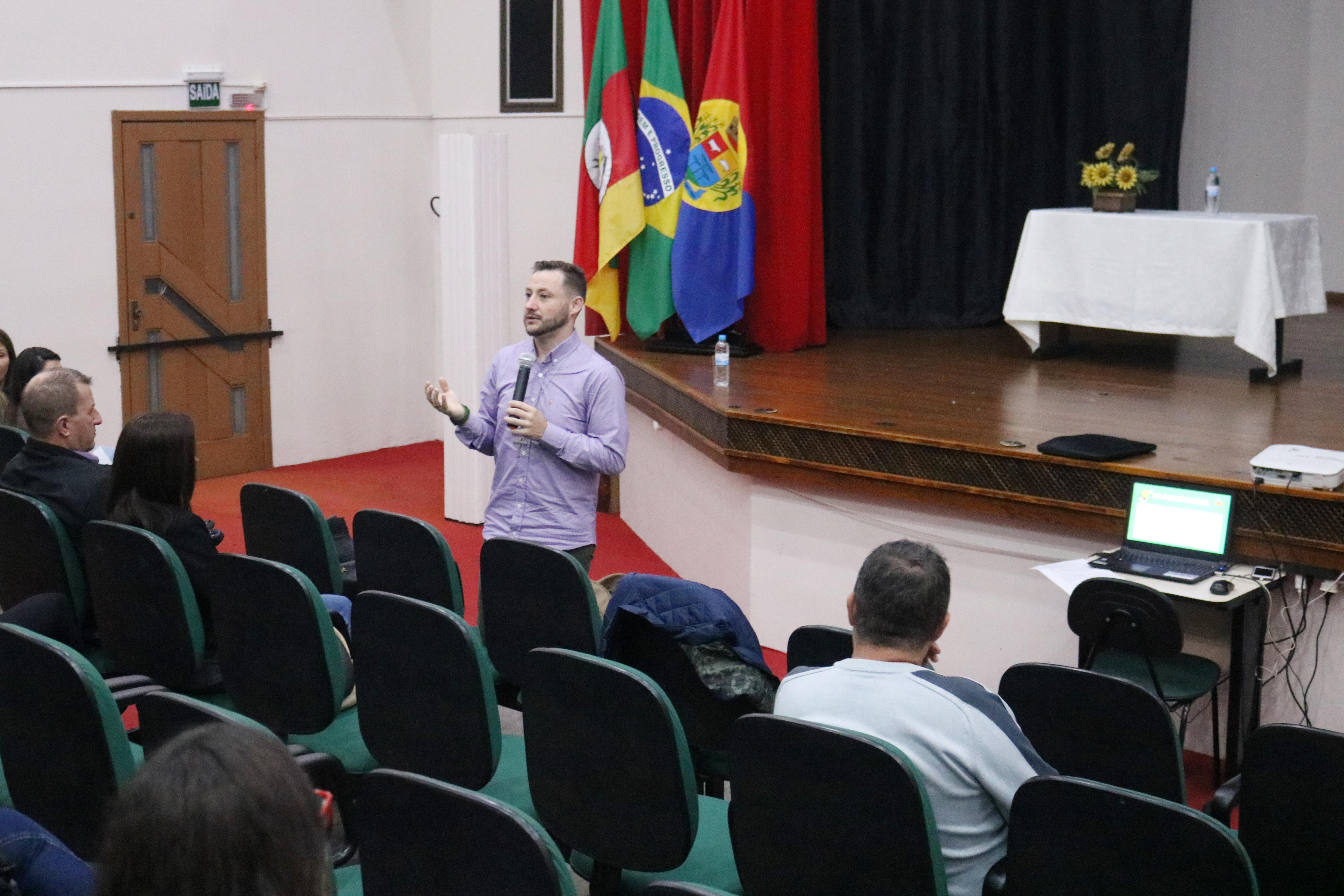O público presente na Casa da Cultura Prefeito Hilário Copatti na noite de quinta-feira (21) prestigiou a fala sobre "A importância da hierarquia no processo familiar e contribuições na escolarização", em que o padre André Varisa destacou a relevância do relacionamento entre pais e filhos e de como lidar com situações do cotidiano familiar.