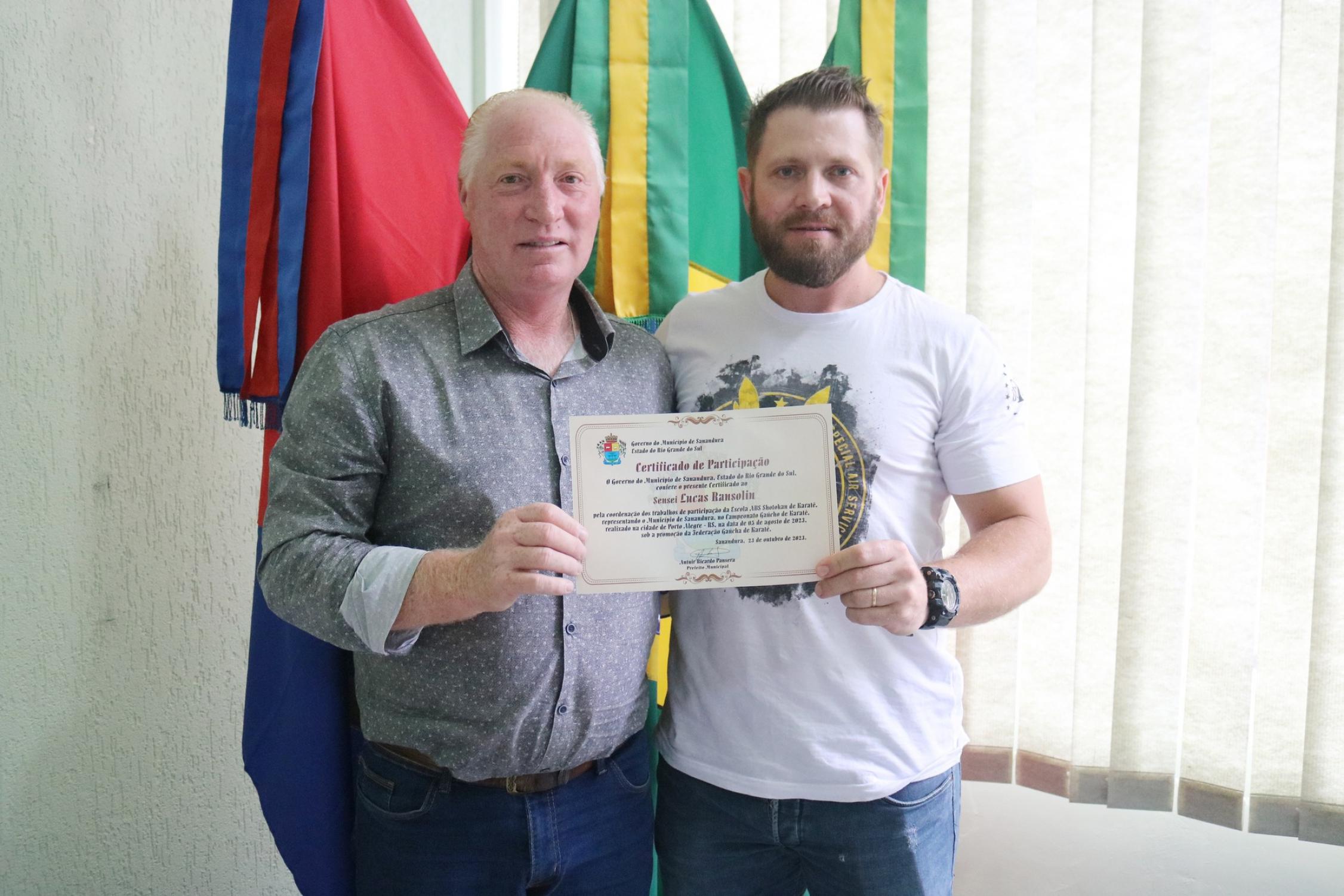 Ainda, receberam os certificados de participação o sensei Andrei Basso dos Santos e o professor Lucas Ransolin pela coordenação dos trabalhos de participação no Campeonato e os karatecas Davi de Matos, Fernanda Miotto Michelin, Fernando Danieli Tonial, Natália Mangoni Chiochetta e Noah Tonial Fracasso pela participação na competição estadual.