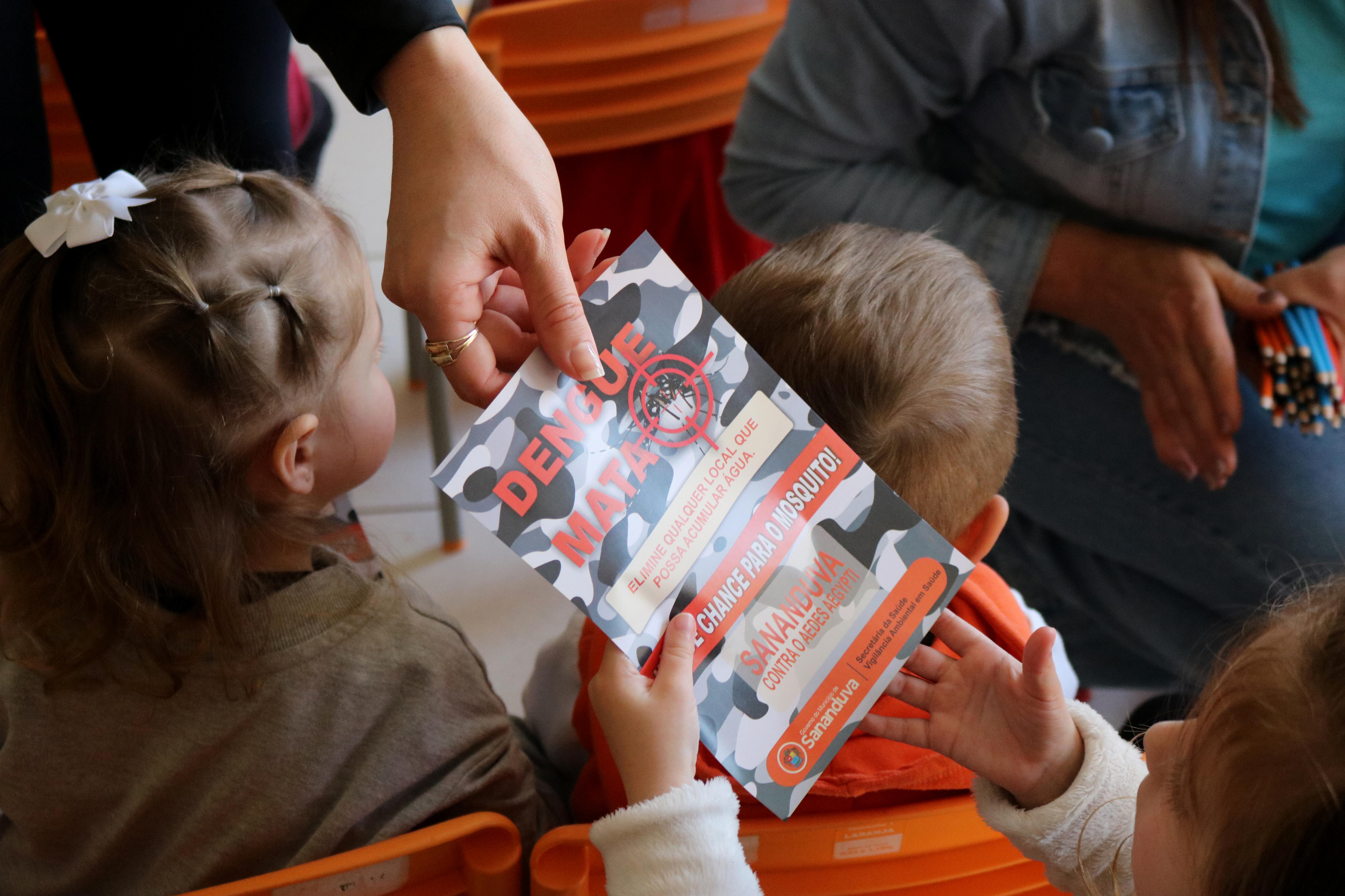 A fim de orientar as crianças de forma lúdica e interativa sobre a prevenção da dengue e do combate ao mosquito transmissor da doença, as agentes de combate a endemias estiveram realizando o trabalho orientativo nas E.M.E.I Tia Salete, Tia Noêmia e Nona Amábile e na E.M.E.F. Oreste Agostinetto.
