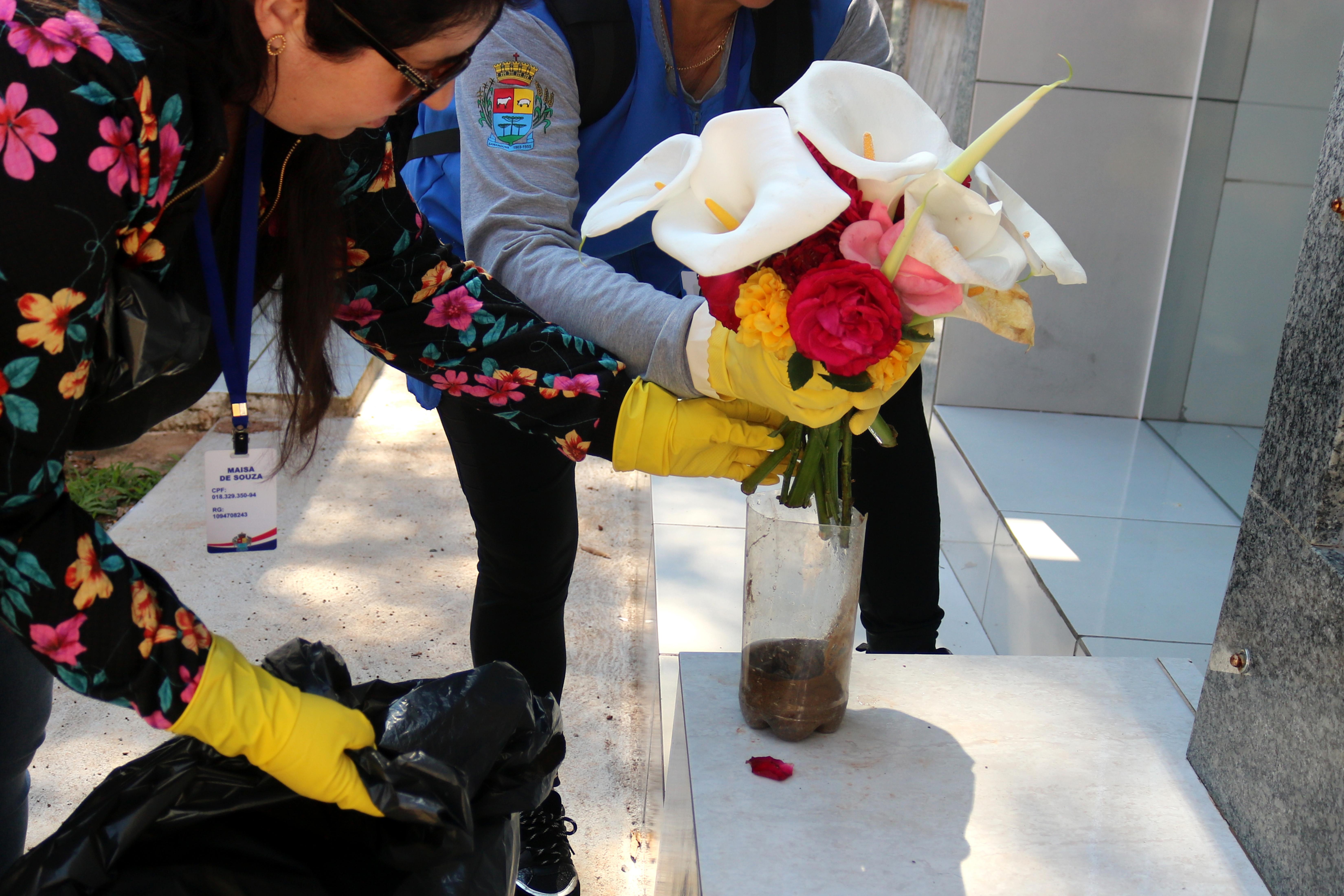 Após a passagem do Dia de Finados e da intensa movimentação de pessoas no Cemitério Municipal Papa João Paulo II, os agentes de combate a endemias realizaram a vistoria no local na manhã de segunda-feira (06), a fim de eliminar os criadouros do mosquito da dengue.