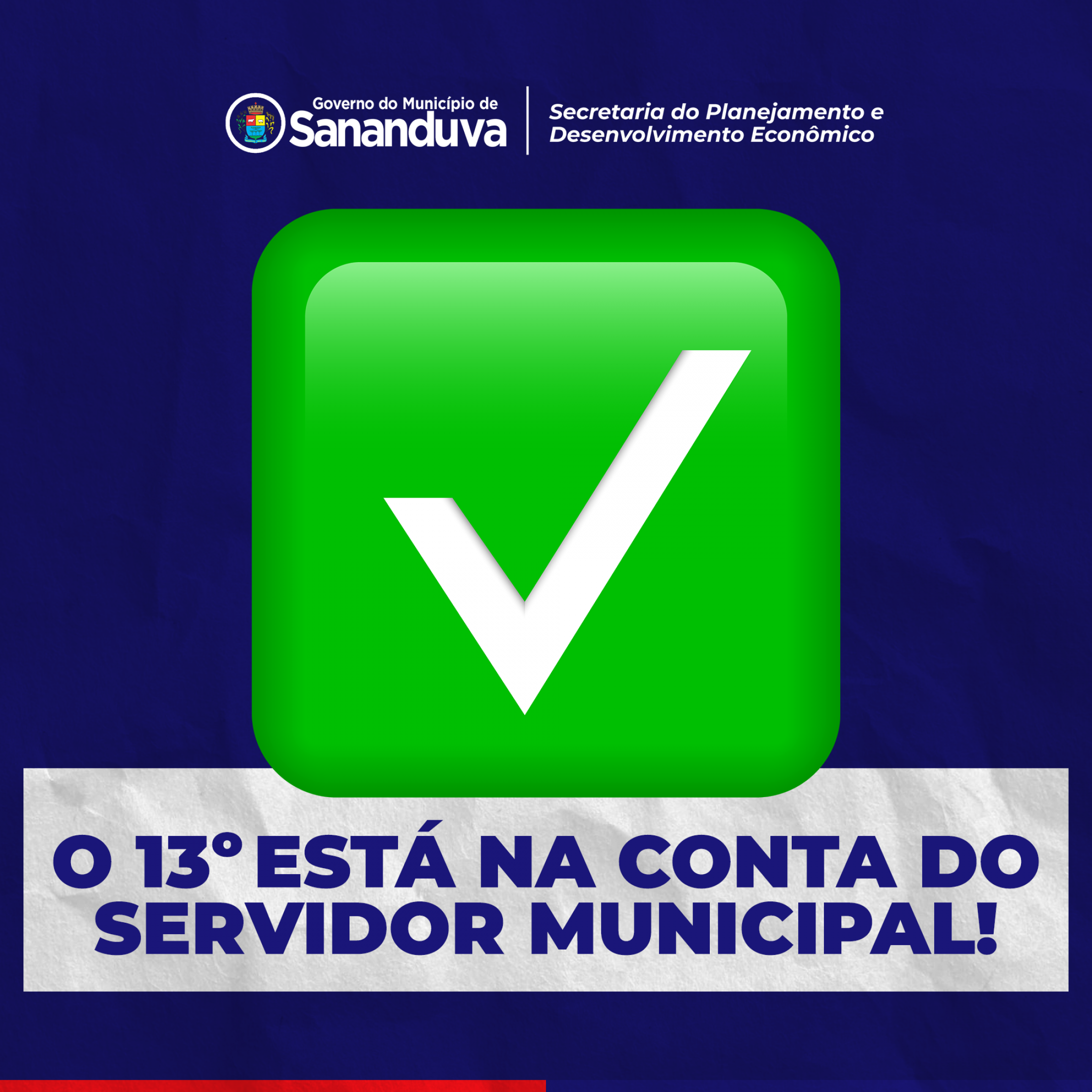 Cumprindo as obrigações legais, o Governo do Município de Sananduva realizou o pagamento do 13º salário do funcionalismo municipal, nesta segunda-feira, dia 11 de dezembro. O valor integral já está na conta dos servidores vinculados ao Executivo Municipal.
